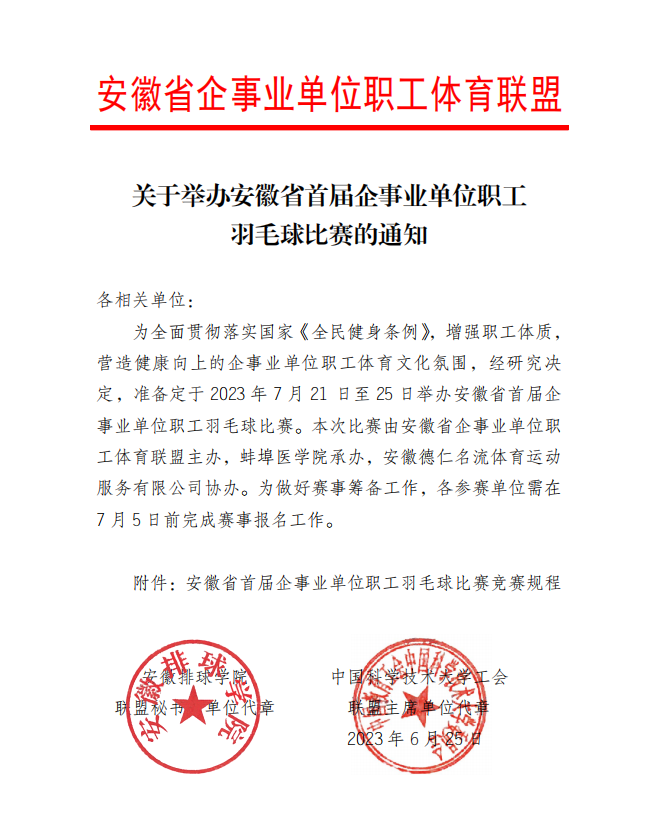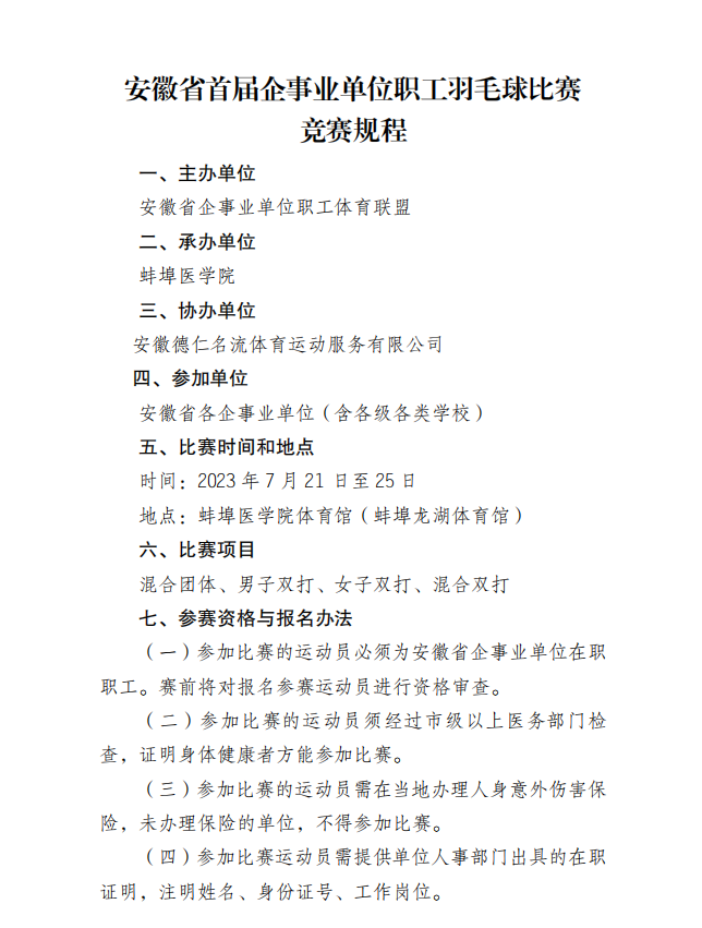 附件1:安徽省首届企事业单位职工羽毛球比赛报名表.doc