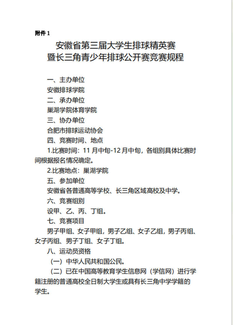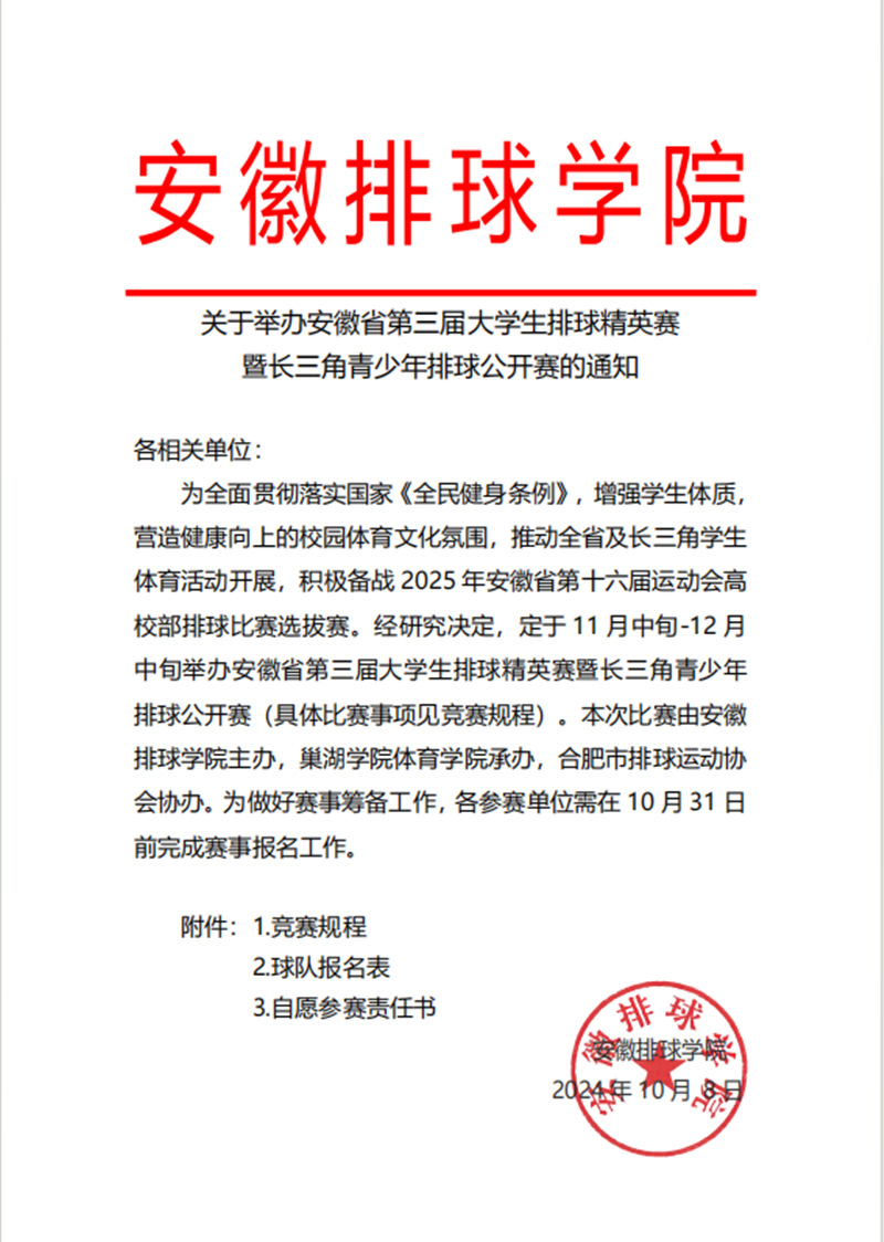关于举办安徽省第三届大学生排球精英赛暨长三角青少年排球公开赛的通知.pdf