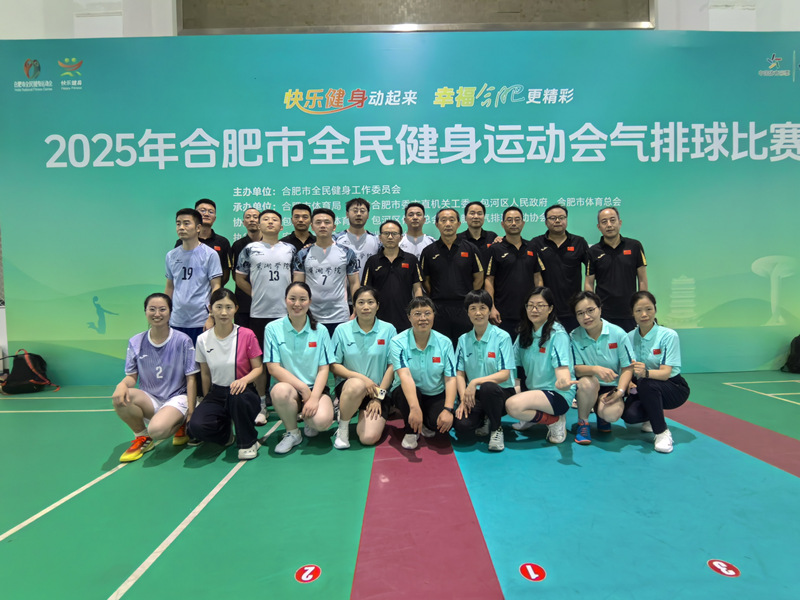 6月21日至6月22日,2025年合肥市全民健身运动会气排球比赛在省质量监督局体育馆举行。本次比赛由合肥市全民健身工作委员会主办,合肥市体育局、中共合肥市委市直机关工委、包河区人民政府、合肥市体育总会承办。来自全市的600余名运动员参赛,Beat365唯一官方网站教职工气排球队代表安徽巢湖经济开发区参赛。