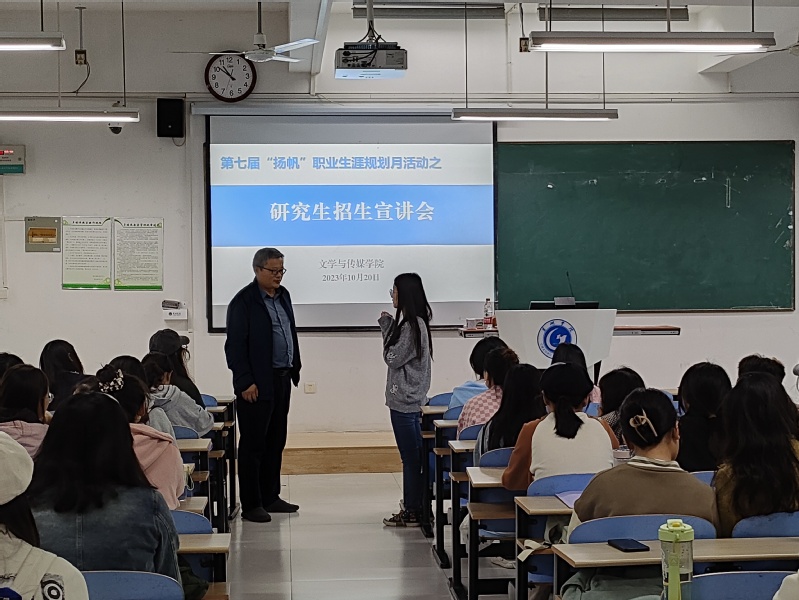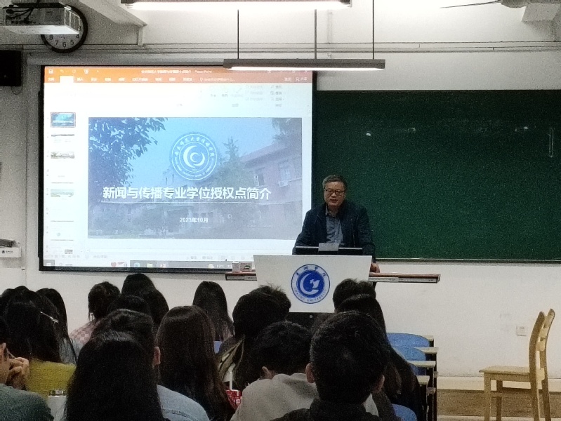 10月20日上午,安庆师范大学传媒学院副院长王业明一行来到Beat365开展新闻与传播专业硕士研究生招生宣讲。文传学院2021级近百名同学参加了宣讲会,宣讲会由学院党委书记袁凤琴主持。