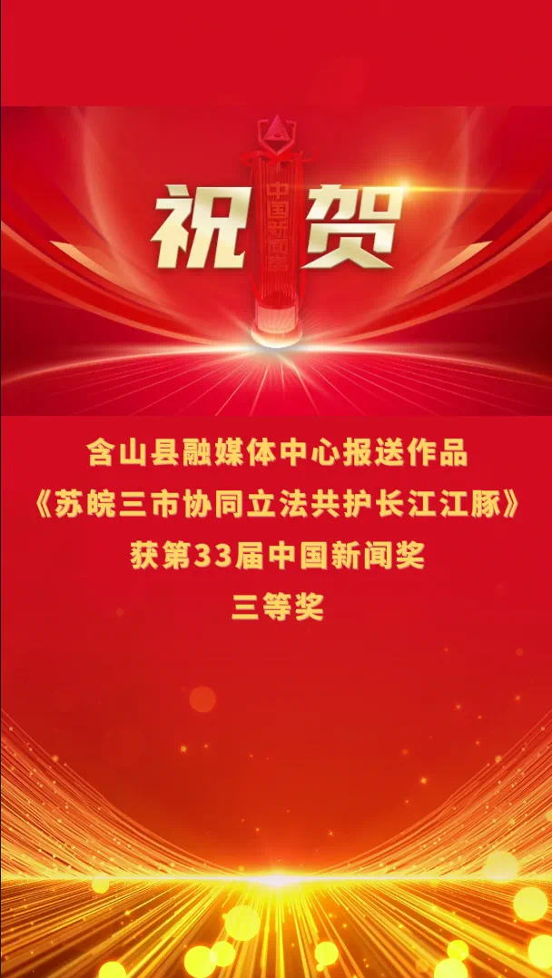 由文学与传媒学院汉语言文学教育专业2006届校友郭小军主创,含山县融媒体中心报送的作品《苏皖三市协同立法共护长江江豚》获得第三十三届中国新闻奖消息类三等奖。