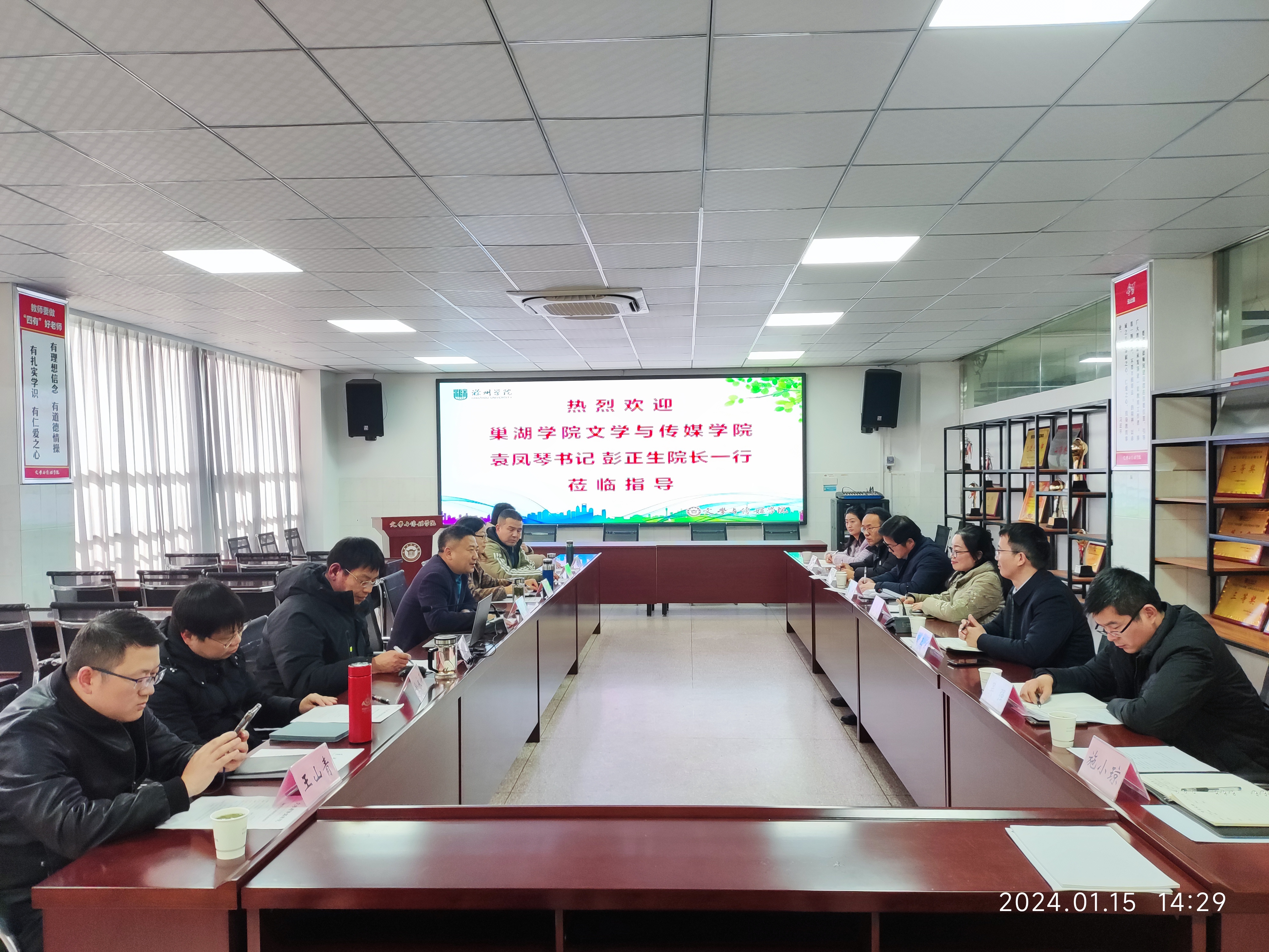 1月15日下午,文学与传媒学院院长彭正生、院党委书记袁凤琴率各基层教学组织负责人、教学(科研)秘书一行7人赴滁州学院文学与传媒学院就新一轮本科教育教学审核评估工作进行调研交流。