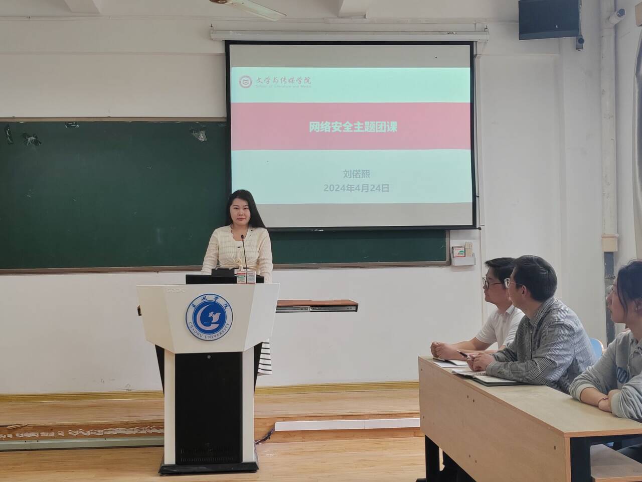 会上,大家集中观看了国家安全教育公益短视频《网络安全你我共同守护》。刘偌熙从网络世界丰富多彩、网络世界的危险、守牢网络安全底线三个方面讲授了网络安全主题团课。她强调各班级、学生组织要加强班级各类群的管理,严防网络诈骗。