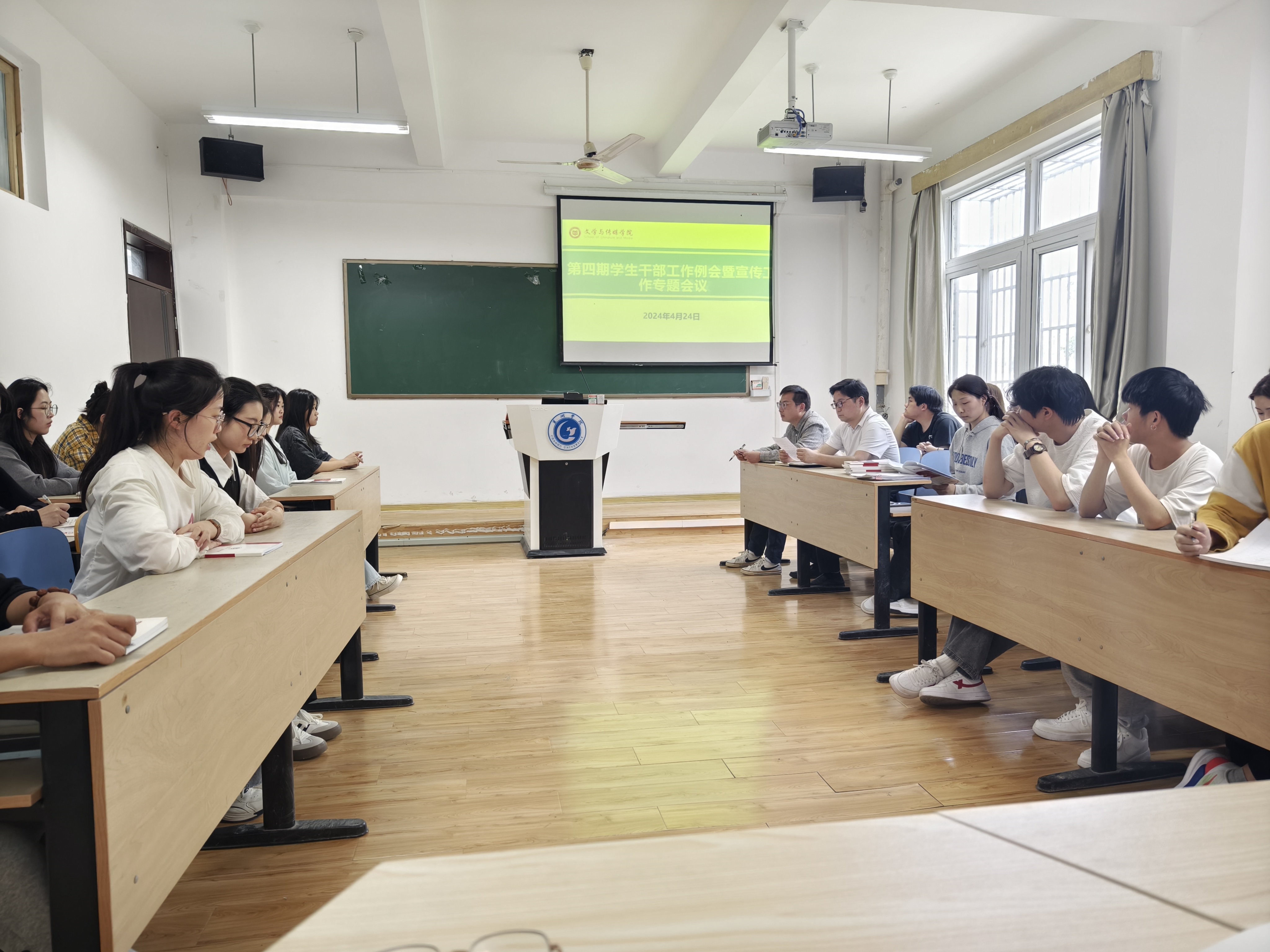为进一步提高学生干部理论水平和工作标准,明确工作方向,4月24日下午文学与传媒学院在敏行楼110召开第四期学生干部工作例会。学院党委副书记孙冰,团委副书记刘偌熙、院属各学生组织负责人,各班团支部书记和院记者站全体成员参加了会议。会议由学院团委书记程生风主持。
