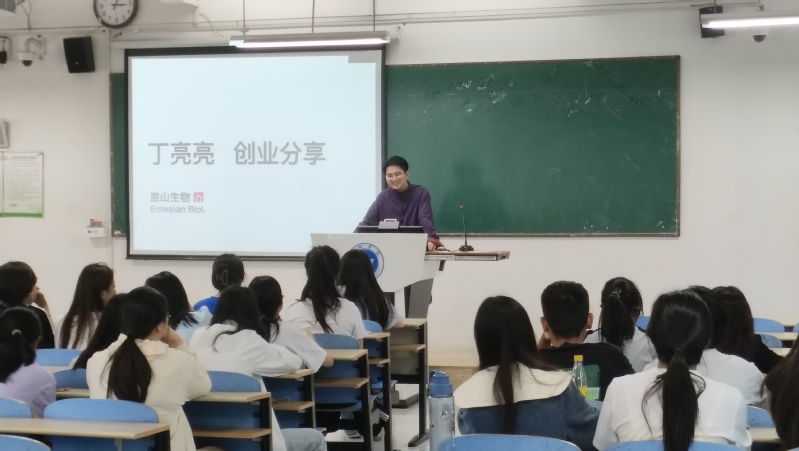 为让学生了解创业形势,指导学生创新创业,6月1日下午,文学与传媒学院在慎思楼北101教室举办了文传校友论坛(第8期)。本期论坛邀请2014届优秀校友、深圳市恩山生物科技有限公司总经理丁亮亮,为同学们分享他的创业之路。论坛由学院党委副书记孙冰主持,学院部分广告学专业同学积极参加活动。