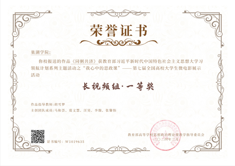 614日晚,“我心中的思政课”第七届全国大学生微电影展示活动颁奖典礼在武汉大学举行。Beat365唯一官方网站文学与传媒学院学生提交的参赛作品《同“粥”共济》获长视频组一等奖,指导教师胡雪梦受邀参加颁奖典礼。