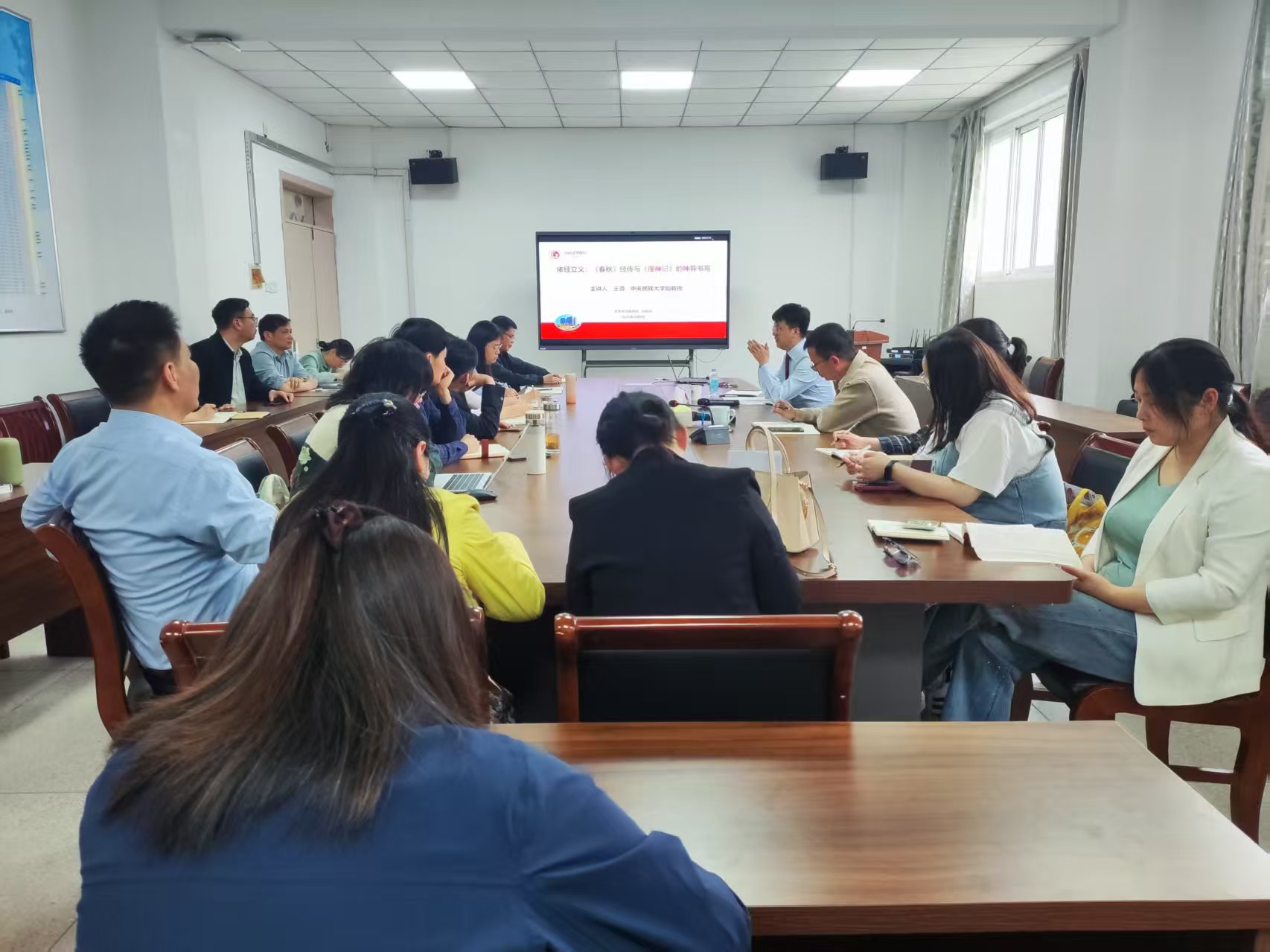4月9日下午,文学与传媒学院第19期“汤山文学讲坛”在敏行楼会议室举行,中央民族大学副教授王勇应邀作“依经立义:《春秋》经传与《搜神记》的神异书写”学术讲座,中文系部分教师参加,讲座由院长彭正生主持。