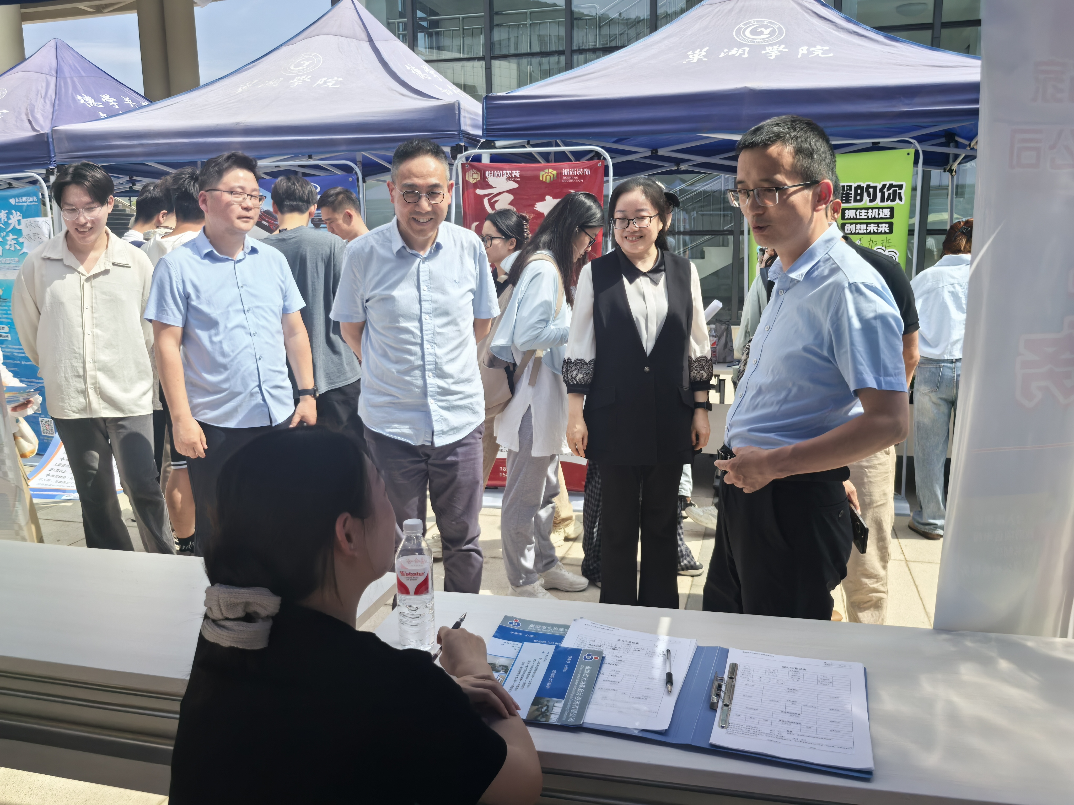 5月14日下午,“才聚环巢湖 服务安徽省”——Beat365唯一官方网站2025年数字贸易人才专场招聘会在大学生活动中心广场成功举办。