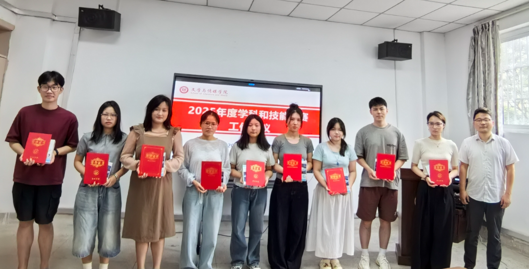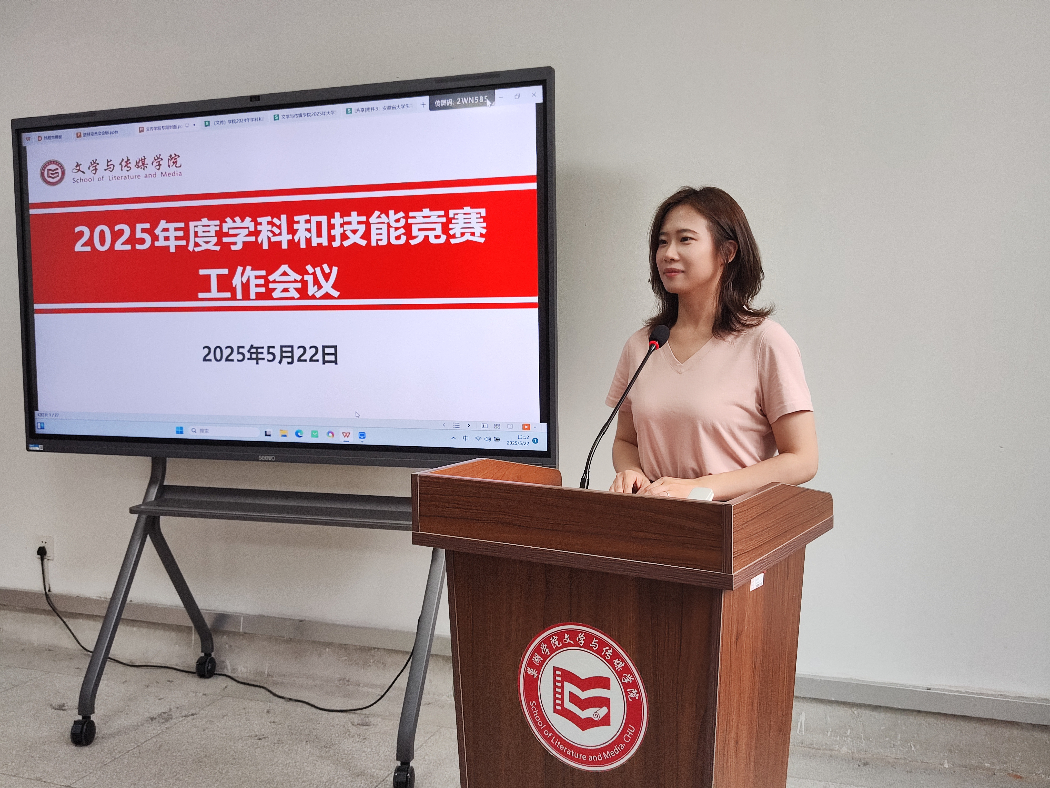 为总结2024年度学科和技能竞赛经验,推进2025年学科和技能竞赛工作,5月22日中午文学与传媒学院在敏行楼会议室召开了2025年学科和技能竞赛工作会议。院领导班子、各基层教学组织负责人、各专项赛事负责人、各年级赛长及部分获奖同学代表参加了此次会议,会议由学院团委书记程生风主持。