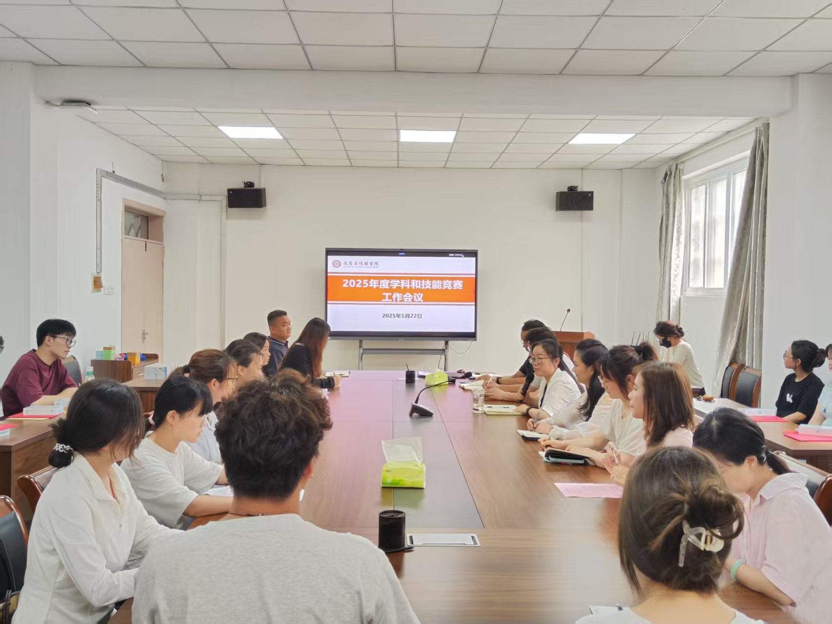 副院长王宇明介绍了学院2024年度学科和技能竞赛获奖情况,指出2024年学院学科和技能竞赛组织有力,成绩明显,特别是在全国高校大学生微电影展示活动中获国家级一等奖,在安徽省校园读书创作活动中获省级特等奖。就2025年学院学科和技能竞赛工作,他提出,赛事项目组要做好赛事的组织、专业教师要积极指导、学生要主动实践积极参与。