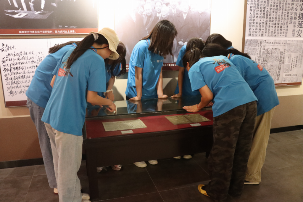 走进始建于1927年的故居,古朴的建筑格局与展陈史料还原着历史现场。在讲解员的介绍中,实践团成员通过泛黄的历史照片、旧物展柜与文献史料,了解张治中将军从寒门学子到北伐名将的历程:他参与淞沪抗战、主政新疆,更以“外御强敌、内求和平”的信念为国内和平奔走,其捐资创办黄麓师范学校的义举,彰显“教育救国”的远见。故居内的陈设与文字,让青年学子直观感受到其爱国情怀与“追求和平”的毕生追求。