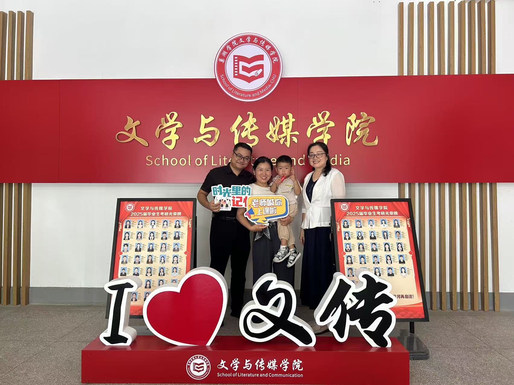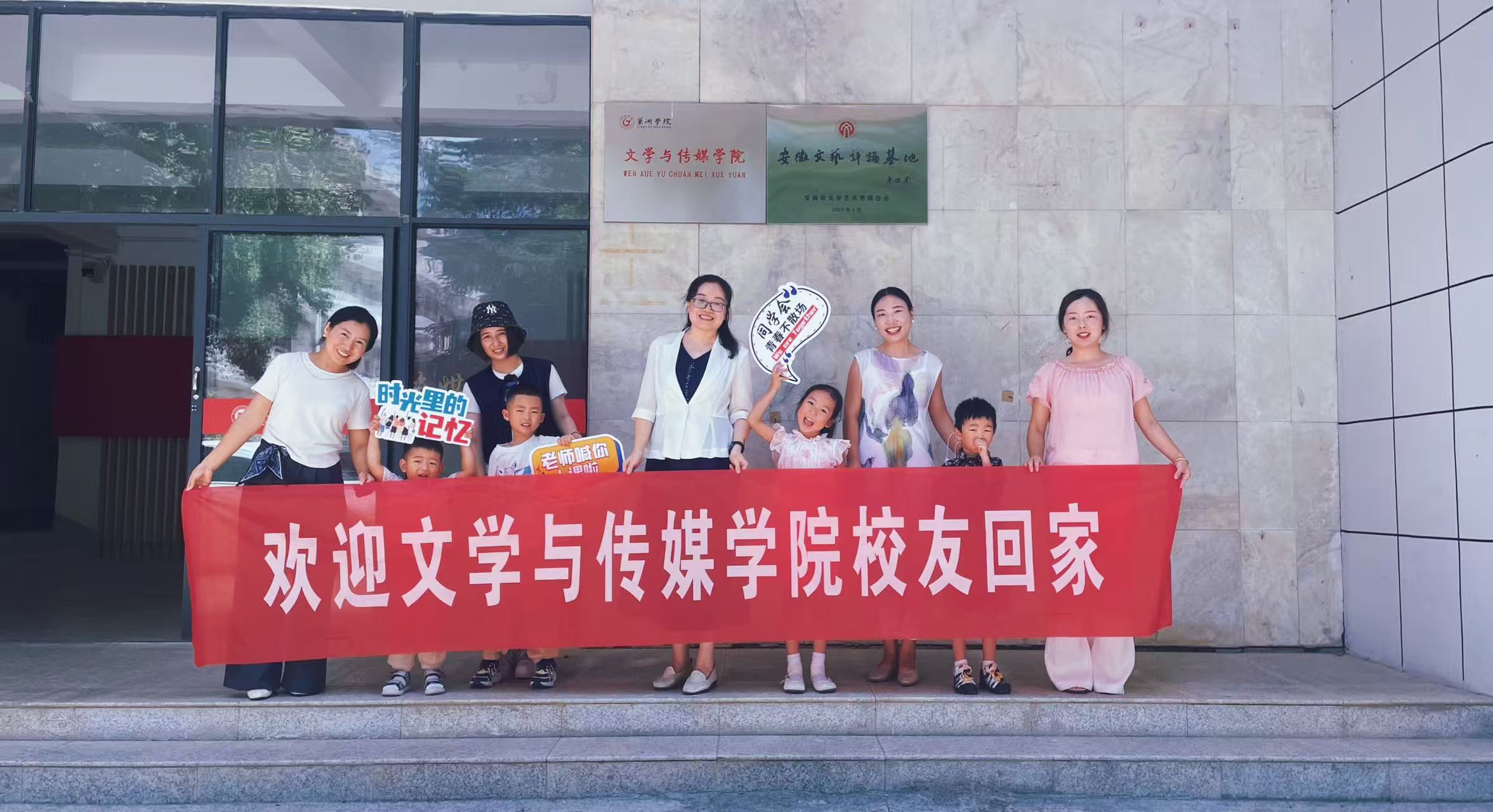 8月15日,暑风蝉鸣,文学与传媒学院迎来了一批特殊的 “访客”——2009级汉语言文学1班的“亲子返校团”。校友们携子女重游校园,赴一场跨越十二年的“青春之约”。学院党委书记袁凤琴、校友联络员李陈热情接待校友一行。