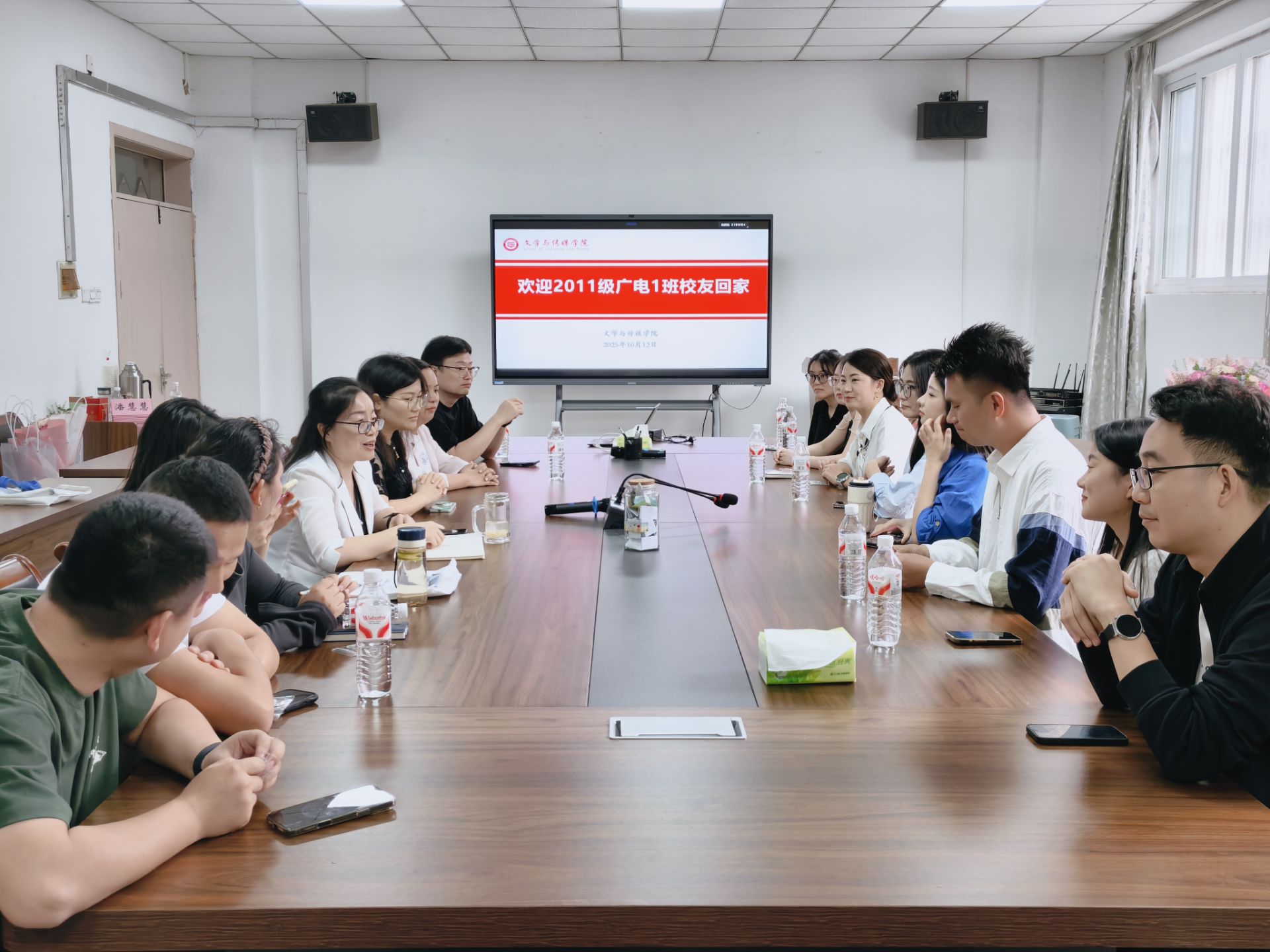 10 月 12 日,文学与传媒学院 2011 级广播与电视学专业1 班校友在毕业十周年之际,从全国各地重返母校、齐聚汤山校园共叙同窗情谊,学院党委书记袁凤琴、原班级辅导员李文娟等教师代表热情接待了返校校友。