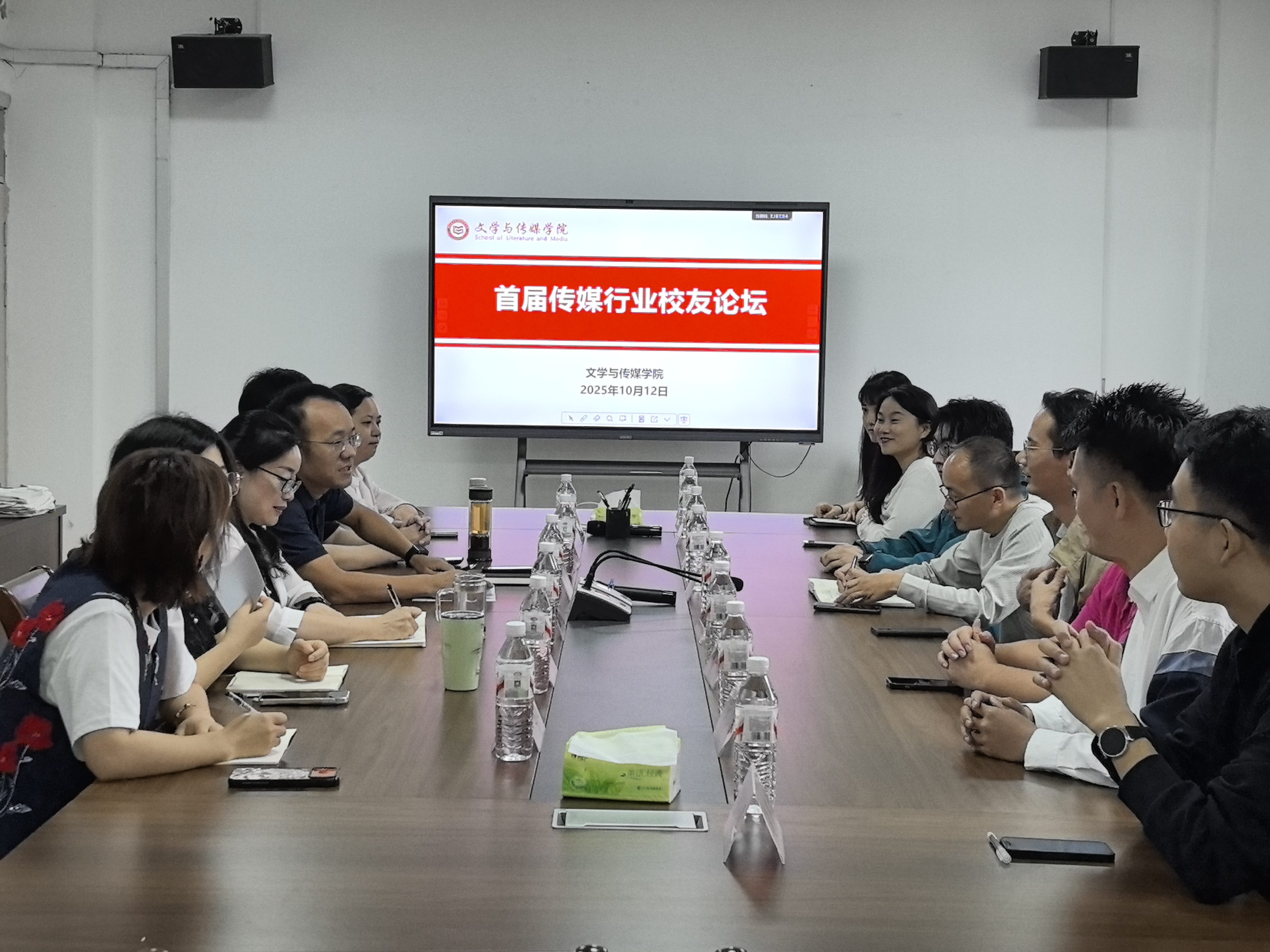 10月12日,文学与传媒学院首届传媒行业校友论坛在敏行楼会议室成功举办。本次论坛以“重逢·成长·传承”为主题,来自全国各地的十余名传媒行业优秀校友代表返校交流。