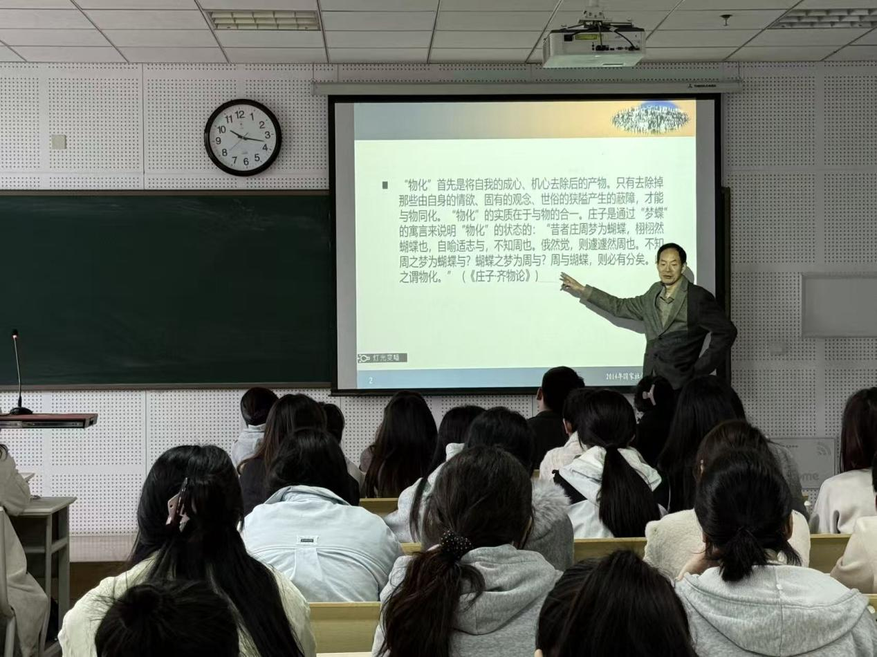 讲座中,赵东教授以道家哲学的“物化”思想为切入点,结合神话学、民族学、人类学、文化学的相关例证,深入讲解了“物化”的实质及其四重内涵。他指出,道家“物化”思想对中国文艺理论的发展具有深远影响,构成了现代文艺美学思想的重要底色。