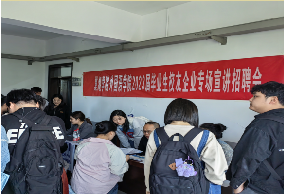 为进一步加强和校友企业的交流合作,强化双向赋能共赢,帮助2023届毕业生实现高质量充分就业,5月11日上午,外国语学院在明德楼二楼大厅举办校友企业专场招聘会,多家校友企业参会,为毕业生提供近50余个优质就业岗位和广阔发展空间。