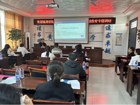 为响应中央号召在全党大兴调查研究的工作要求,探索大中小学课程思政一体化教学路径,推进外国语学院课程思政建设走向深入化,5月25日,外国语学院副院长余鹏,校团委副书记(挂职)、外国语学院教工第二党支部副书记李成飞赴颍上县黄桥镇中心学校和中心小学开展“大中小学英语课程思政一体化教学路径及师资培养研究”主题教育专题调研。颍上县黄桥镇中心学校校长汪洋、颍上县黄桥镇中心小学校长苏颍,中心学校及中心小学全体英语教师参加调研活动。