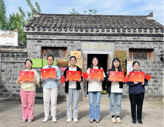 在陈原道故居前,学生第四支部书记方磊老师带领党员同志重温了入党誓词。在庄严的党旗下,师生们庄严宣誓,这不仅是对革命先烈的缅怀,也是对青年学子理想信念的一次深刻党性教育。