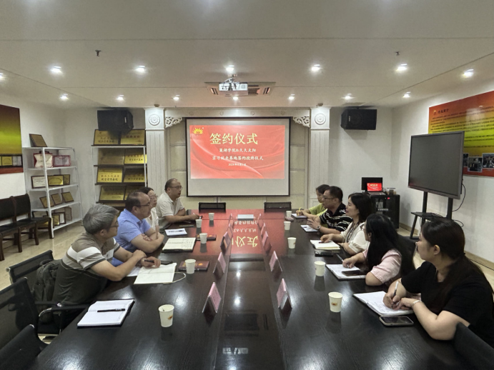 外国语学院党委书记张蕊、院长余荣琦重点介绍了外国语学院相关专业的培养目标、师资队伍、办学特色和实习就业情况。双方围绕校企合作、产教融合和实习就业等方面进行交流探讨,并表示将以此为契机,进一步深化交流合作,充分发挥各自优势,共谋高质量发展。会上,双方共同签署了实习就业基地协议并为实习就业基地揭牌。