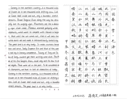 为进一步提升师范类专业学生综合素质,提高外国语学院学生双语书写能力,营造以赛促学氛围,外国语学院于11月中旬顺利举办“师范技能强基础 三字书写展实力”第二届师范生“三字”书写大赛。