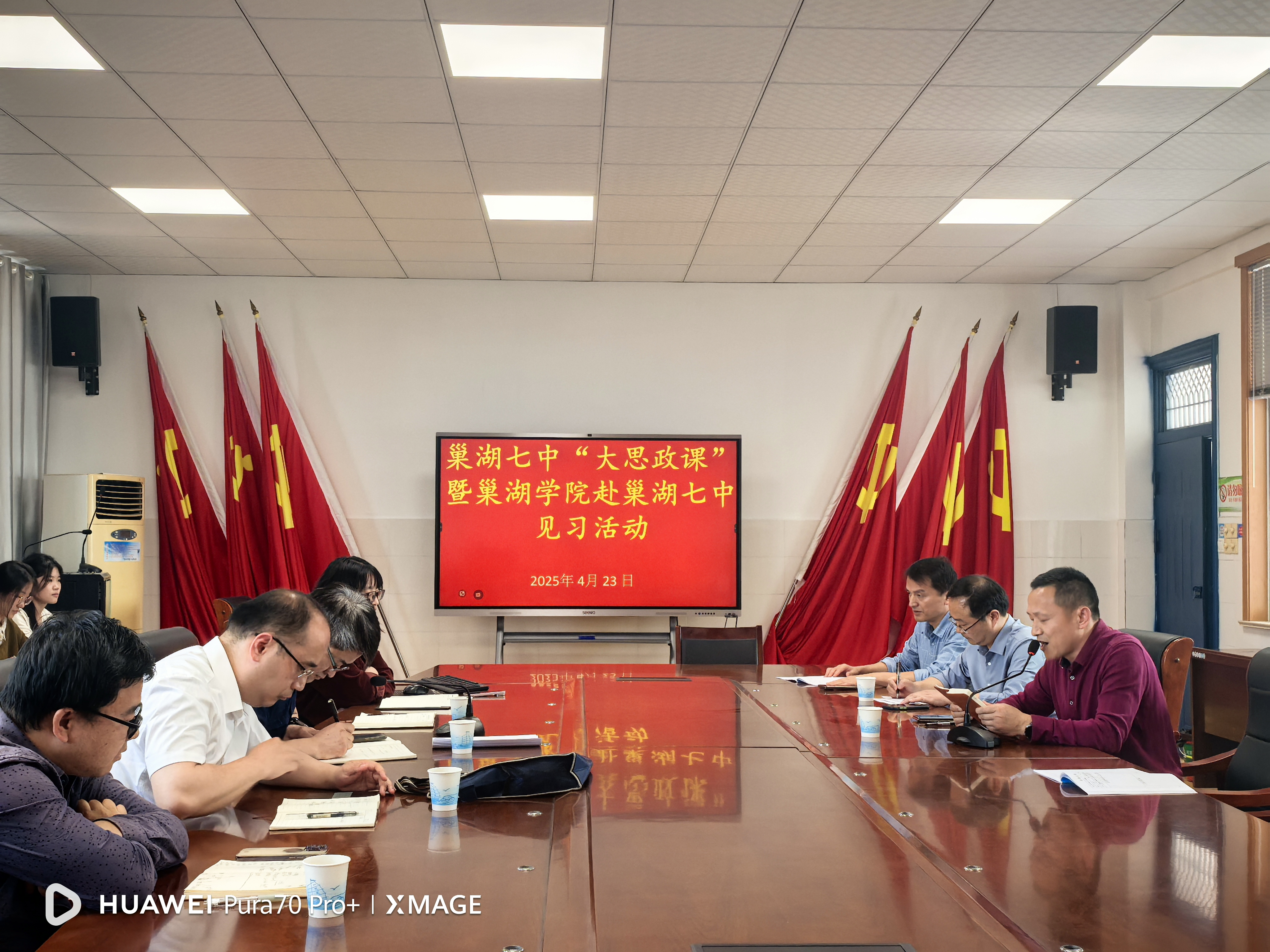2025年4月23日下午,外国语学院院长余荣琦、党委副书记李磊一行赴巢湖七中学联合开展“思政铸魂,协同育人---大中小学课程思政一体化建设暨见习活动”。巢湖七中教育集团党委书记蒋家锁、校长李华共同指导活动开展,双方围绕思政教育创新、校际协同育人等主题展开深度交流,为构建全学段贯通的课程思政教育体系注入新动能。活动由巢湖七中教学副校长吴向阳主持。 29名英语专业师范生深入基础教育一线,通过课堂观摩、专题研讨、校友经验分享等形式,探索课程思政与学科教学深度融合路径,强化校地协同育人实效。