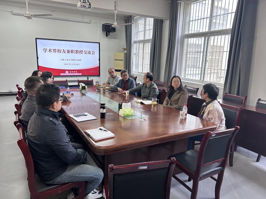 11月14日下午,外国语学院在明德楼202会议室举办学术界校友兼职教授交流会,合肥工业大学胡作友教授、张小曼教授应邀参会。外国语学院党政领导班子、基层教学组织负责人、学科带头人、专业负责人及学术骨干教师出席会议,交流会由院长余荣琦主持。