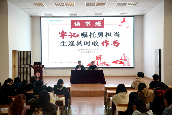 校团委负责同志作了总结发言。对培训班学员圆满结业表示祝贺,并强调党史学习教育的重要意义。指出:“读书班成员要以此次读书班培训为契机,深化党史学习;要重点学习习近平总书记关于青年工作的重要思想;要坚定“四个自信”,增强“四个意识”,做到“两个维护”,从党史学习教育中汲取奋进力量;要坚持多读书,读好书,在读书中启迪思维、净化心灵、丰富内涵。”