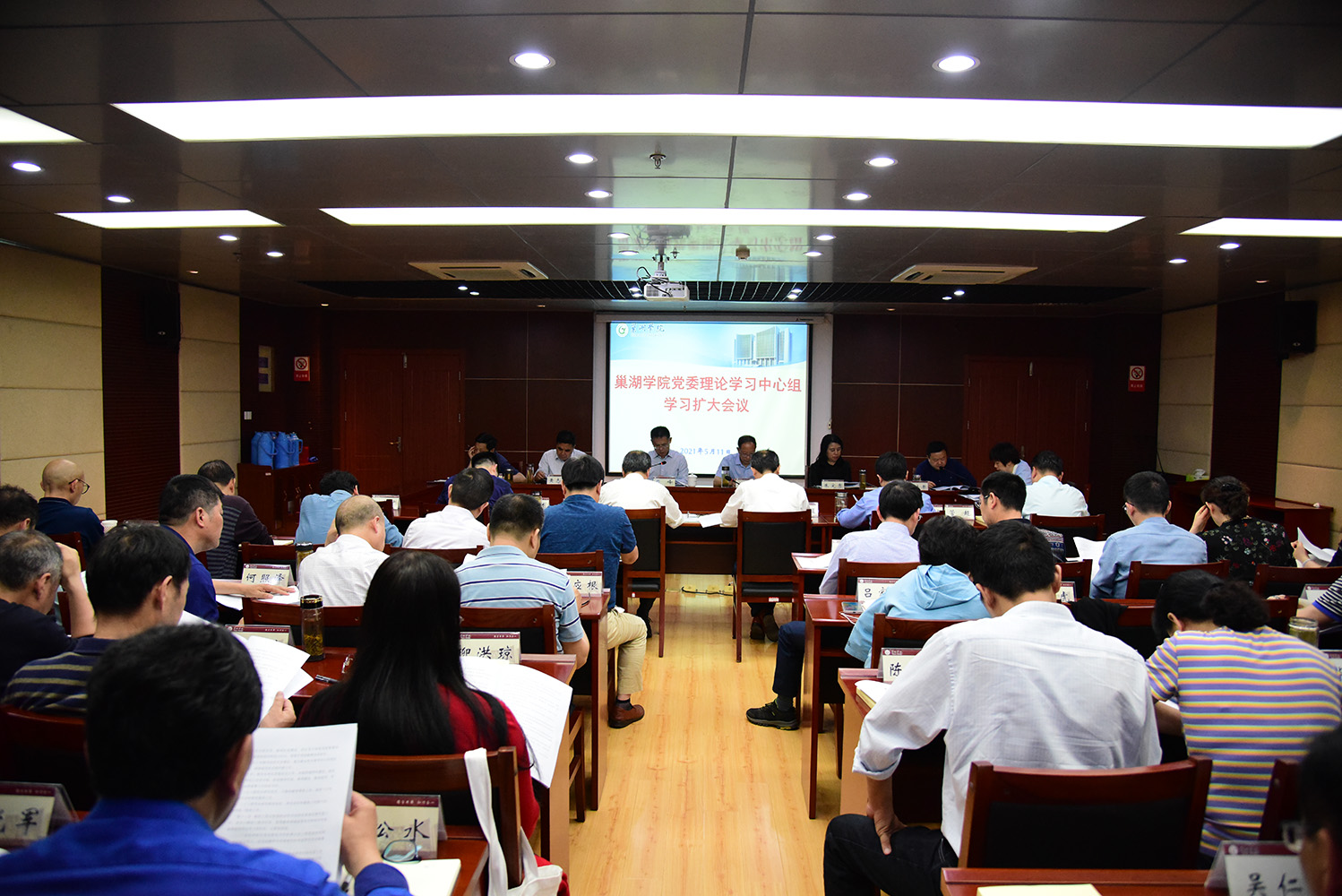 5月11日下午,Beat365唯一官方网站党委在第二会议室召开理论学习中心组学习扩大会议。校党委书记周峰主持会议并讲话。学校副处级以上领导干部参加会议。