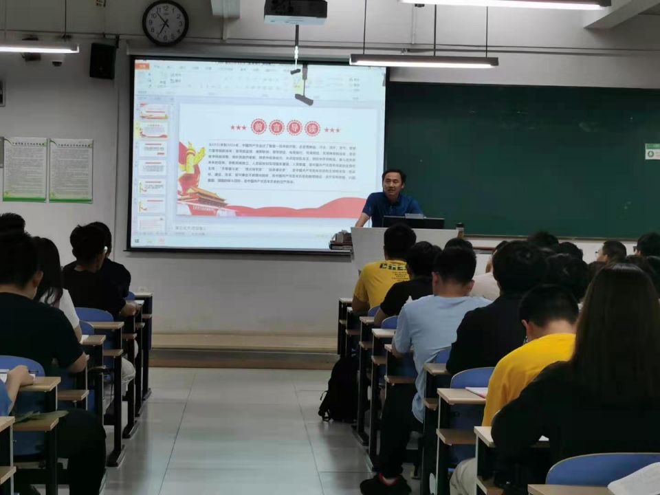 校党委副书记阮爱民在慎思楼中204教室为2020级化工与应化专业的同学上了一堂以党史宣讲为主要内容的“形势与政策”课。阮书记回溯了我们党的历史,总结了党的历史发展经验。最后对大学生提出希望,希望同学们从党史学习中汲取智慧力量,争做中国特色社会主义事业的合格建设者和可靠接班人。