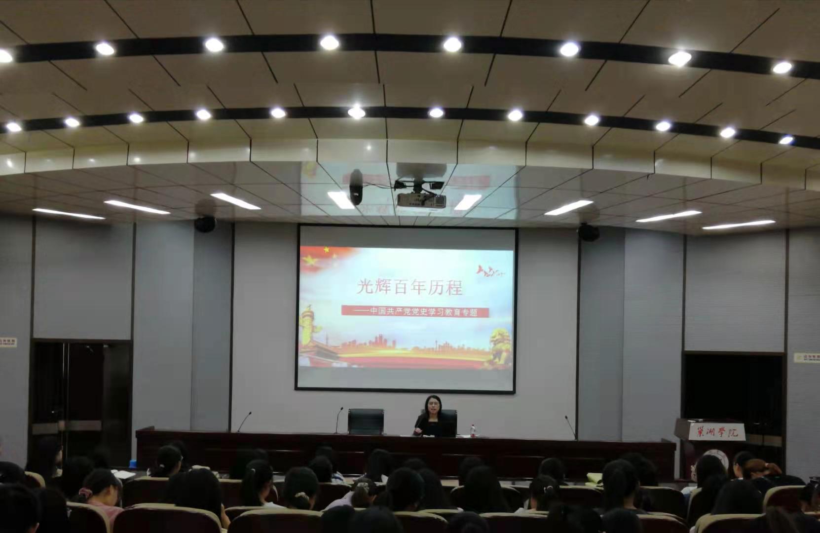 副校长朱定秀在致知楼报告厅为2020级英语专业学生讲“形势与政策”课。朱校长指出,中国共产党百年历史的主题和主线是争取民族独立、人民解放和实现国家富强、人民幸福;中国共产党百年历史的主流和本质是“不懈奋斗史”、“理论探索史”、“自身建设史”。最后,她希望大学生要学好党史,努力传承红色基因、汲取前行的智慧和力量,切实做到“学史明理、学史增信、学史崇德、学史力行”。