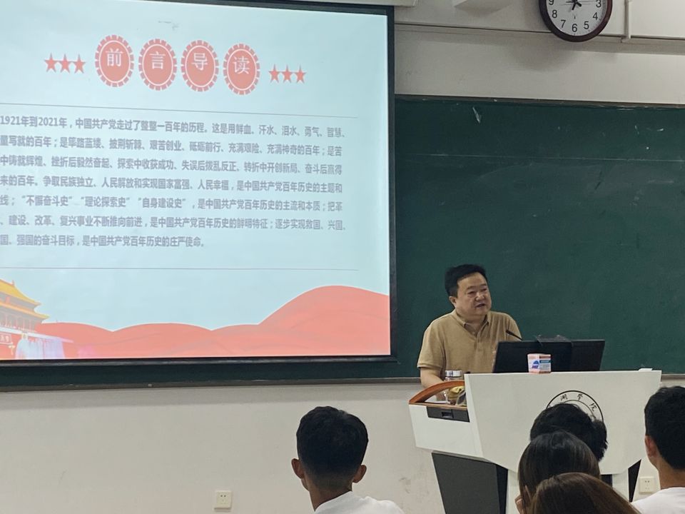 校党委书记周峰在博学楼304教室和慎思楼中201教室分别为2020级机电专业学生和2020级计算机科学与技术、软件工程专业学生开展党史学习宣讲。周书记结合历史与现实的经典案例,生动地讲述了我们党的百年辉煌史和坎坷路,并阐明了历史和人民选择了中国共产党的根本原因,深入分析了“中国共产党为什么能”、“马克思主义为什么行”、“中国特色社会主义为什么好”等重大问题。最后,周峰书记希望同学们充分认识开展党史学习教育的重大意义,勉励大家学党史,感党恩,培育正确的价值观和人生观,努力学习,为实现中华民族的伟大复兴贡献自己的力量。