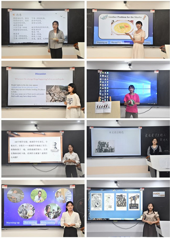 8日晚上6时,校赛决赛正式拉开帷幕。在赛前评委准备会上,外国语学院副院长余荣琦就本次比赛的规则、意义、流程、评分细则及评委工作职责等进行了具体说明。本次决赛包括教学设计、课件制作、模拟上课和板书四个方面,分文理两组进行。比赛现场,各位选手尽显风采,以巧妙的编排、熟练的授课和大方的教态给在场观众带来了精彩展示。其中耐人寻味的《套中人》、富有象征色彩的《雨巷》、《勾股定理》、《ModernHero》、《自由落体运动》、《藏书票》、《排球》等精彩内容。比赛中选手们准备充分、教学思路清晰、教态端庄大方,展现我校师范生较强的教学基本功。
