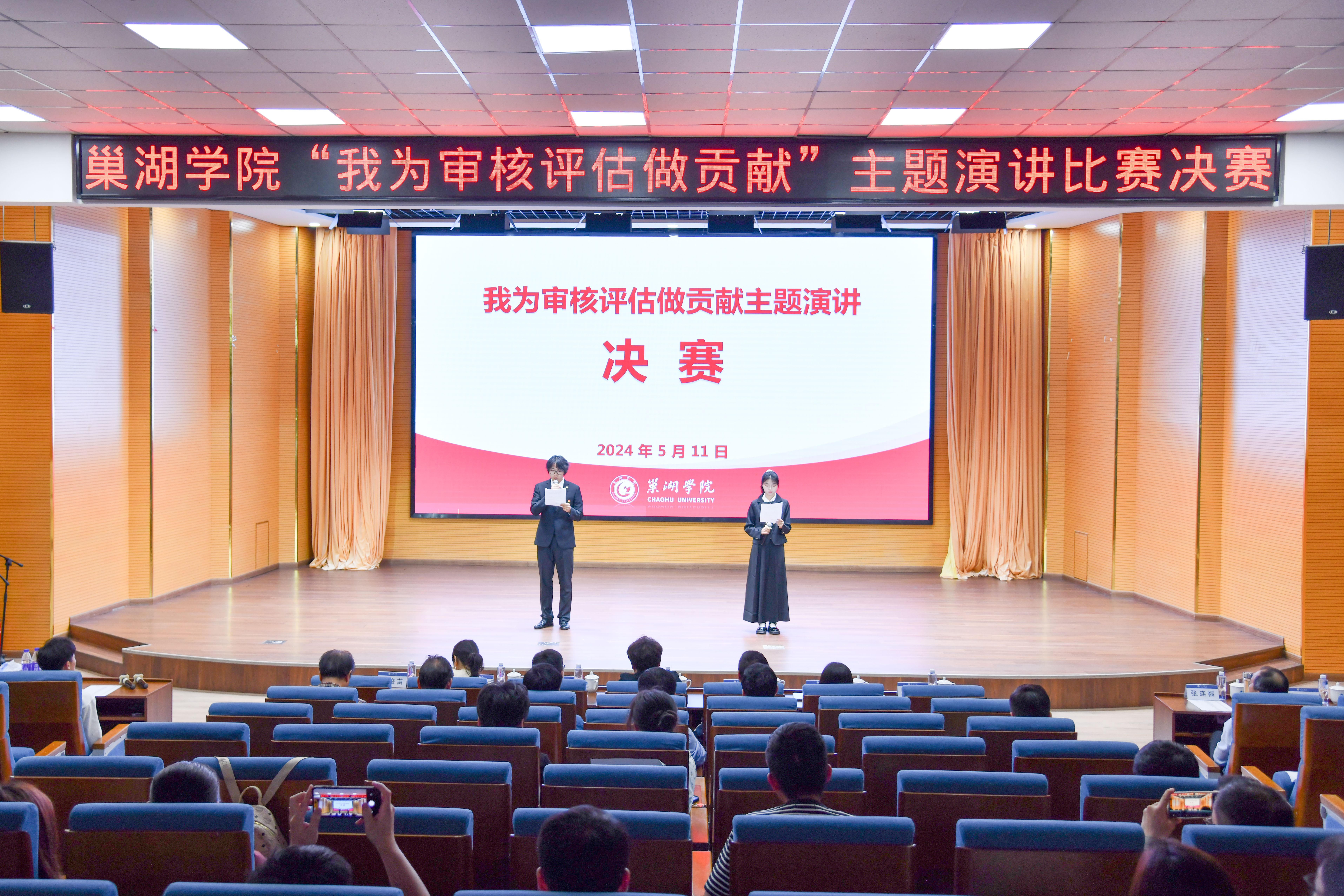 5月11日,学校在求实楼报告厅举行“我为审核评估做贡献”主题演讲决赛。比赛邀请了合肥广播电视台主任播音员许瑞杰、合肥广播电视台新闻主播李广松、安徽省演讲学会理事洪小华、巢湖市金牌讲解员张宏、巢湖市演讲朗诵学会艺术指导部部长王平担任评委。