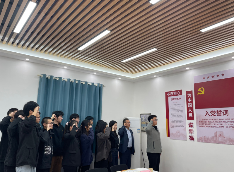 全体党员面向鲜红的党旗,庄严地举起右手,重温入党誓词。铿锵有力的誓言,表达了党员们对党的无限忠诚和为党的事业奋斗终身的坚定决心。