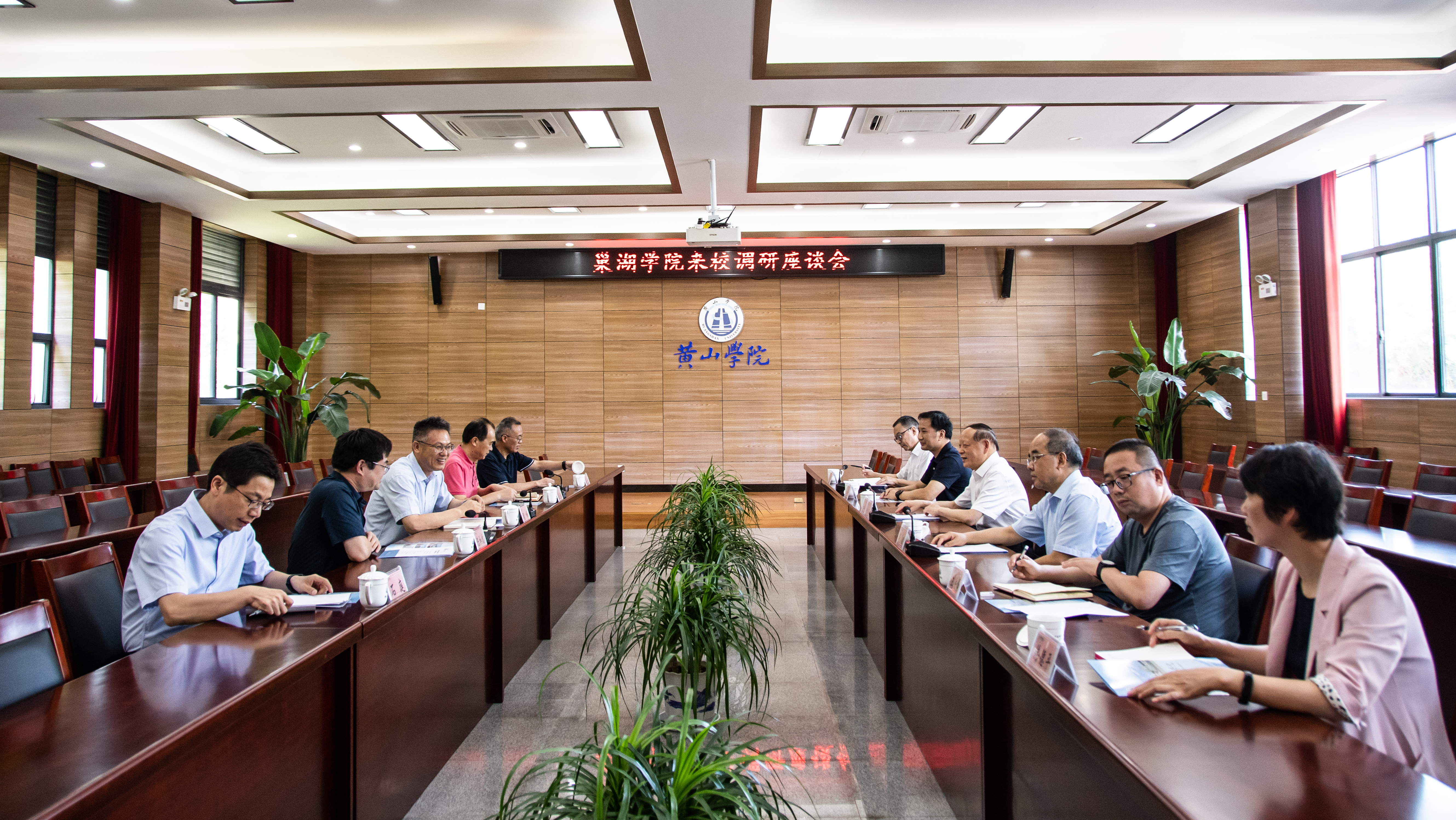 在黄山学院,周峰一行受到了党委书记李铁范和副校长张小明的热情接待。座谈中,周峰表示,黄山学院近年来在校地合作、硕点建设、国际交流与教育等方面成效显著,值得学习借鉴,特别是确定的发展目标、举措切合实际,令人振奋和鼓舞,衷心为黄山学院取得的成绩感到高兴,希望两校加强合作与交流,携手共建地方应用型高水平大学。李铁范简要介绍了黄山学院近年来的发展情况、办学特色和优势,着重介绍了第四次党代会以来在加强应用特色高校建设、硕士学位授权立项单位建设、推动国际交流与合作等方面所做的工作。他表示,两校办学历史、历程相同,发展路径和目标相近,希望双方进一步加强沟通交流,相互取长补短,赓续友谊。