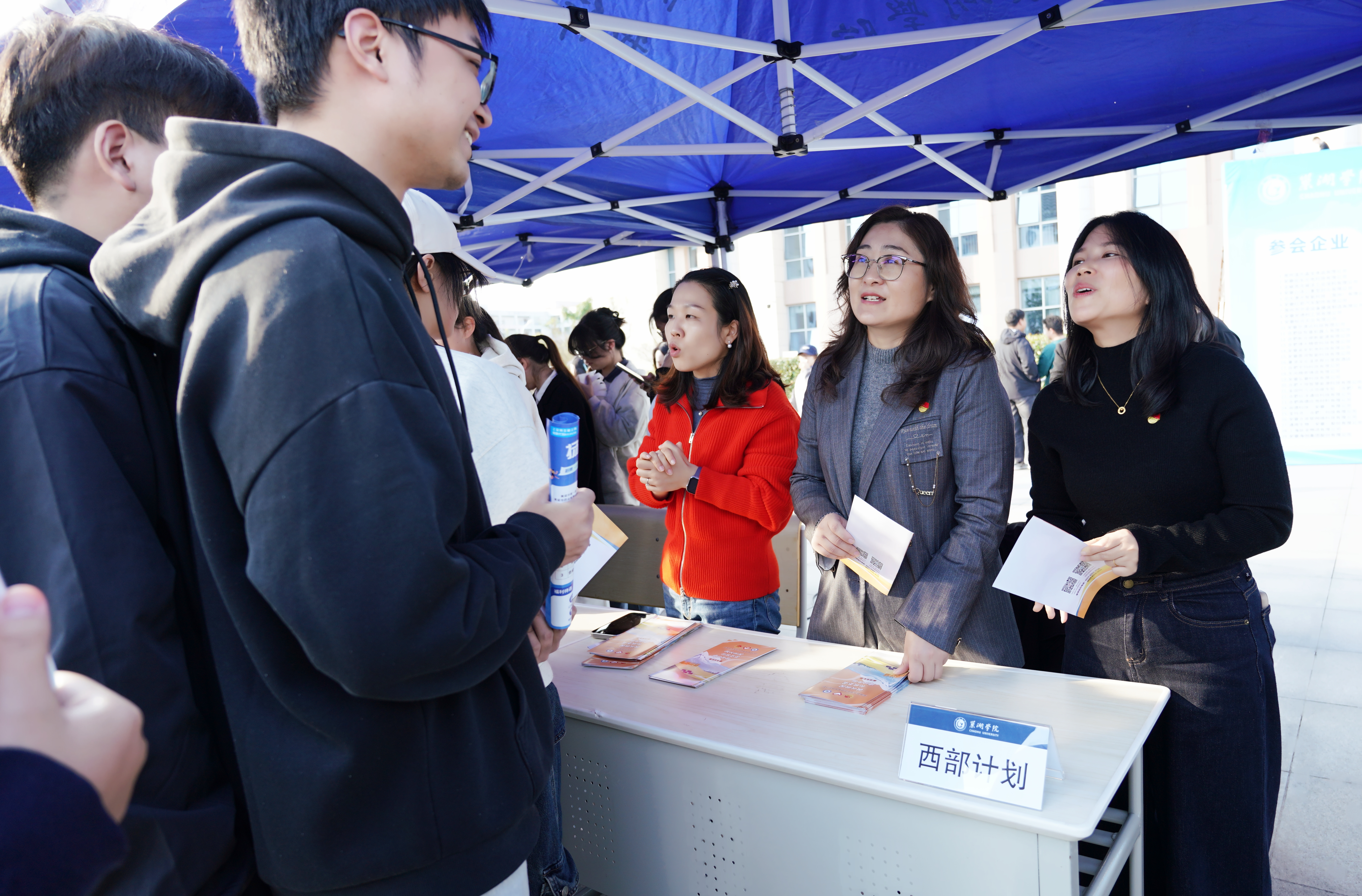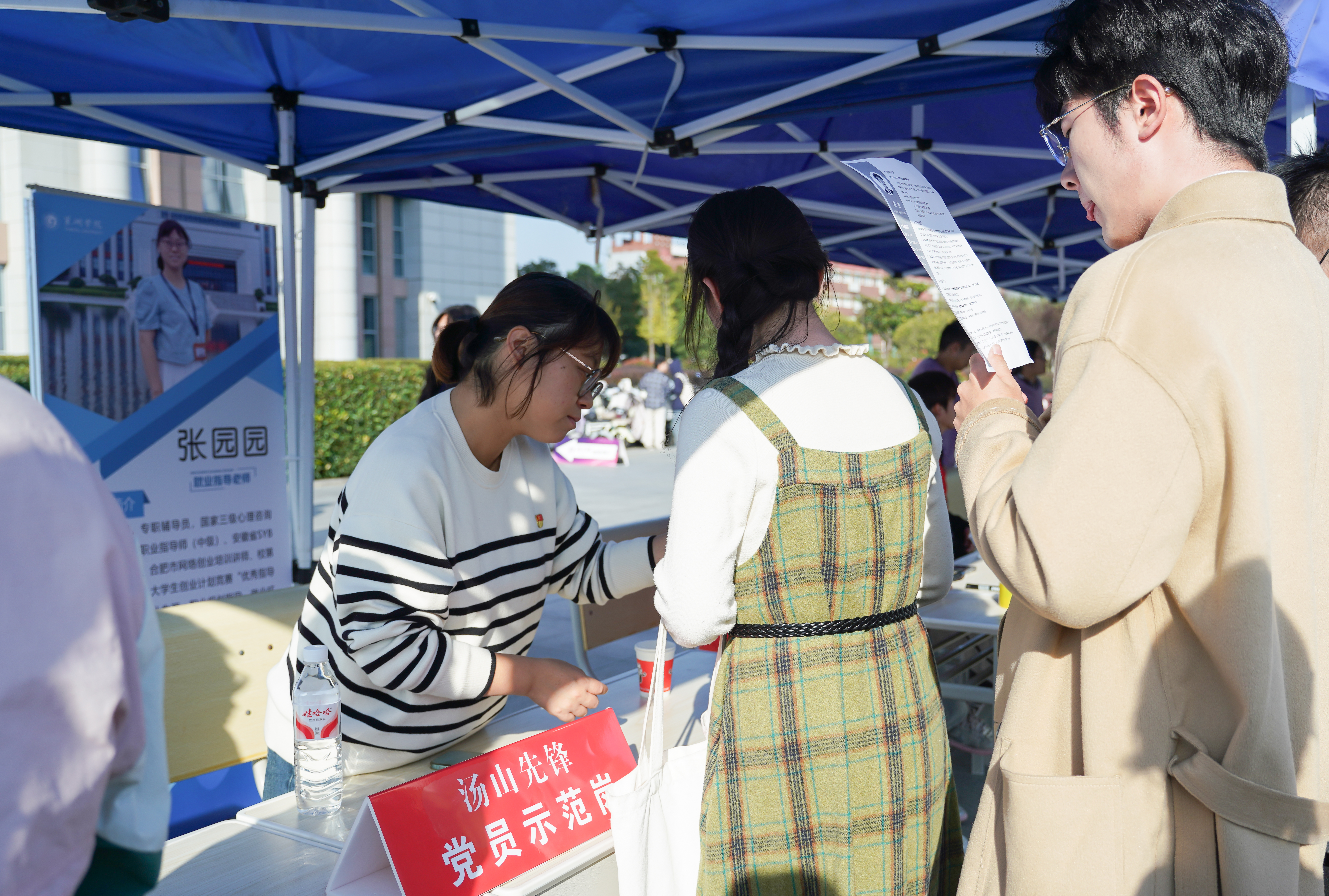 为全面提升求职体验与服务质量,活动现场设置了多项暖心服务专区。学校联合巢湖市人武部开展征兵政策宣传,国防教育协会退役大学生现场答疑;团委设立“西部计划”政策咨询区,吸引了大量学生咨询;“汤山先锋党员示范岗”联合“指南针”就业创业指导名师工作室提供“简历义诊”服务,为毕业生提供“一对一”专业指导;简历免费打印区累计为学生打印简历3000余份,切实为毕业生提供帮助,助力毕业生现场求职。定制版帆布包、热水供应等暖心举措与服务也获得了毕业生的一致好评。
