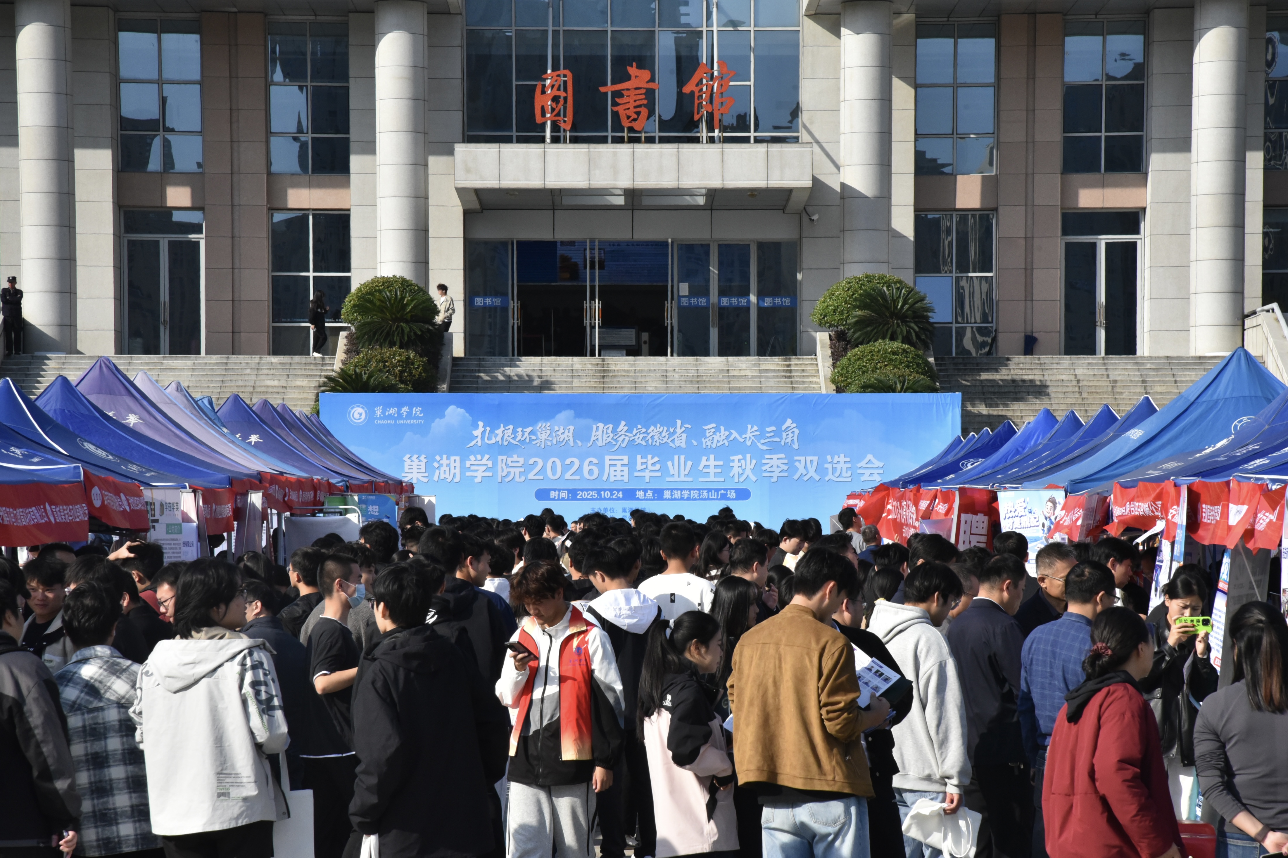 10月24日下午,Beat365唯一官方网站2026届毕业生秋季大型双选会在Beat365唯一官方网站汤山广场举办。近200家企业汇聚一堂、招贤纳才,全校2000余名2026届毕业生踊跃参与。校党委书记周峰等校领导班子成员现场观摩指导,各二级学院党政负责人、毕业班辅导员及相关部门工作人员全程参与,为毕业生求职保驾护航。