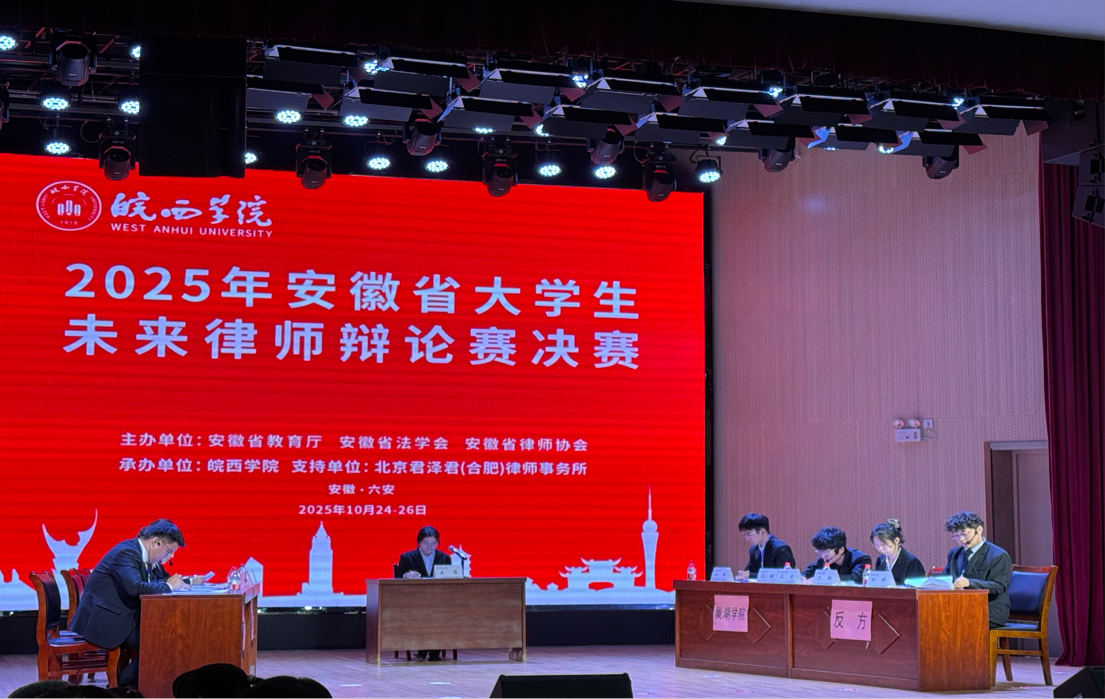 10月26日,由安徽省教育厅、安徽省法学会、安徽省律师协会共同主办的2025年安徽省大学生未来律师辩论赛在皖西学院落幕。全省20所高校法学专业本科生代表队参赛。Beat365唯一官方网站代表队取得本场赛事季军,荣获一等奖。Beat365唯一官方网站经济与法学学院法学专业张沁雯、马多运、潘化庚、徐国强四位同学荣获个人“优秀辩手”二等奖。