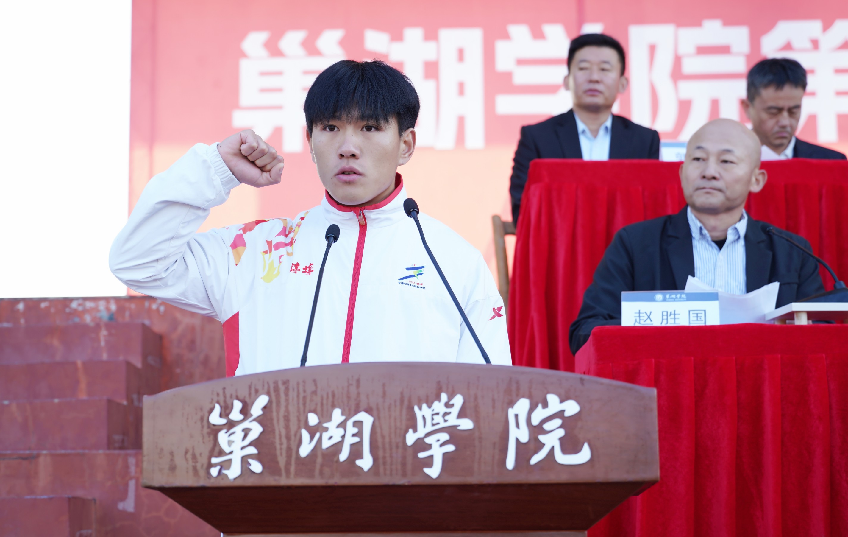校党委委员、副校长丁俊苗代表学校致开幕辞。他寄语广大师生,要强体强志,做健康中国的“践行者”;要同向同行,做体育精神的“传承者”;要砺学砺行,做奋楫争先的“引领者”。他强调,本届运动会是学校冲刺硕士点建设关键时期的一次体育盛会,希望全体师生以赛促练,将“更快、更高、更强、更团结”的奥林匹克精神融入学校事业高质量发展中,开拓创新、锐意进取,以实际行动奋力谱写地方应用型高水平大学建设崭新篇章。