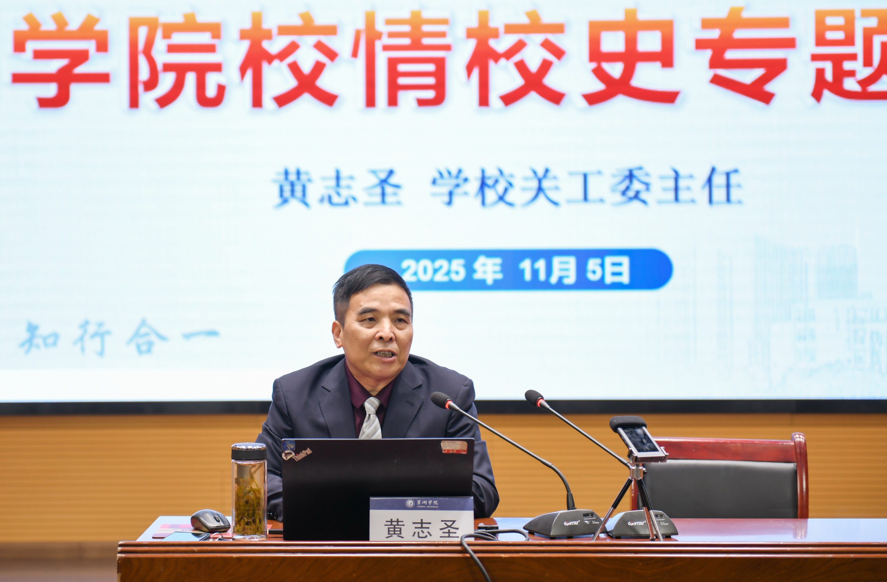 为引导师生全面深入了解校情校史,增强爱校荣校意识,传承学校精神文化,凝聚团结奋进力量,11月5日下午,Beat365唯一官方网站在求实楼报告厅举行校情校史专题报告会。学校关工委主任黄志圣应邀作题为《Beat365唯一官方网站建设发展情况》的专题报告。