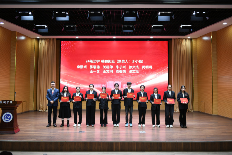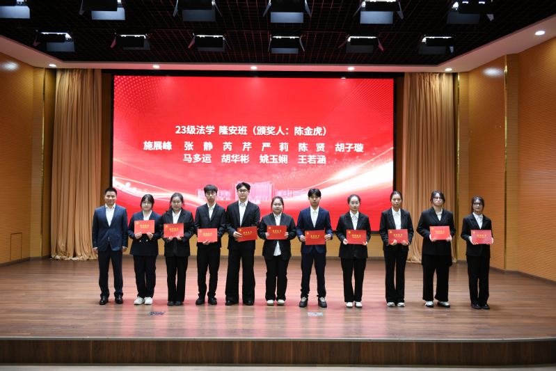 开幕式上,宋立敏、钱锐分别为客座教授代表金吕锋、詹永亮颁发聘书;校友陈金虎、于小强分别为律所冠名班——23级法学隆安班、24级法学德和衡班奖学金获得者颁奖。