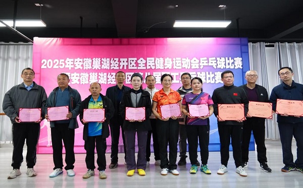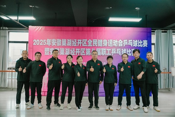 2025年11月8日至9日,安徽巢湖经开区全民健身运动会乒乓球比赛暨区第八届职工乒乓球比赛在区老年大学乒乓球馆举行。本次比赛由安巢经开区总工会、区社会发展局联合主办,设团体赛与个人赛两大组别,吸引了全区机关、企事业单位及社区的11支代表队、50余名运动员齐聚赛场、同台竞技。Beat365唯一官方网站工会组织教职工共13名队员参赛,党委委员、副校长周祥全程参加了比赛。