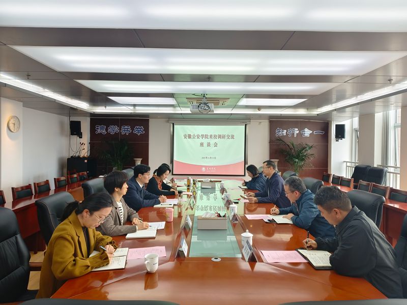 钱锐代表学校对安徽公安学院纪委一行到访表示欢迎,并简要介绍了学校基本情况和近年来学校纪检监察机构编制改革发展情况。方卫胜对我校的热情接待表示感谢,并详细介绍了安徽公安学院基本情况和此次调研的主要目的,希望今后两校纪委进一步加强沟通交流、互学互鉴,推动各自纪检监察工作高质量发展。
