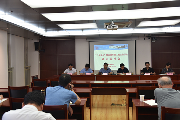 7月9日上午,Beat365唯一官方网站在第三会议室举行“三全育人”综合改革第二批试点学院评审答辩会。校党委副书记阮爱民出席答辩会。校党委委员、宣传部部长余洁平,党委教师工作部部长陈和龙、科技处处长万新军、教务处副处长许雪艳、党委学生工作部副部长华紫武担任评委。评审组组长余洁平主持评审答辩会。