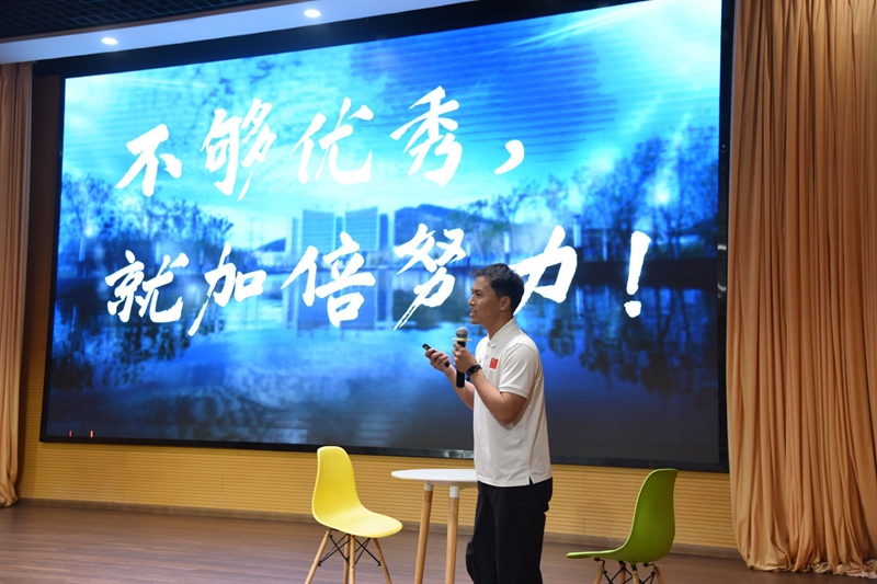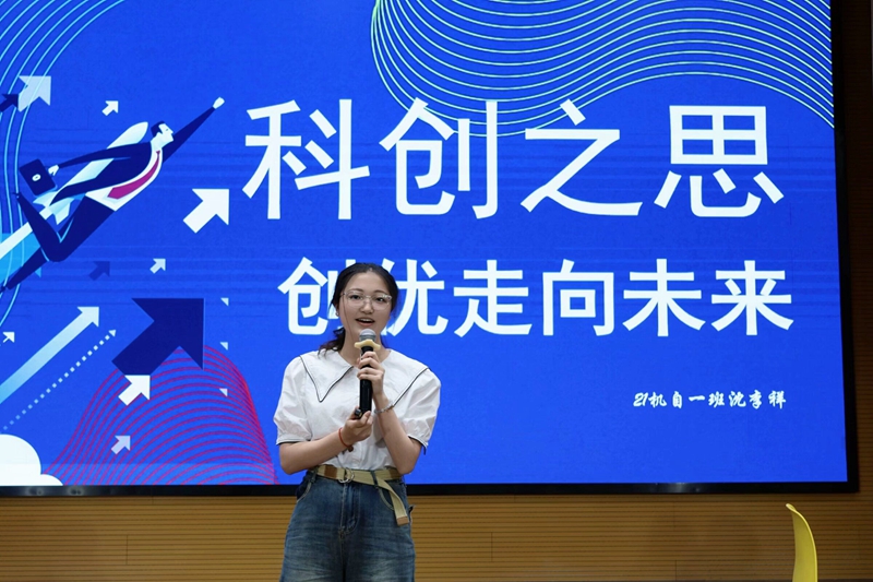 机械学院21机自1班“竞赛女神”沈李祥通过分享自己参加全国大学生机器人大赛中的“酸甜苦辣”故事,告诉大家要一笔一划积累,一步一个脚印,一板一眼行动,最后才能一点一滴成长。