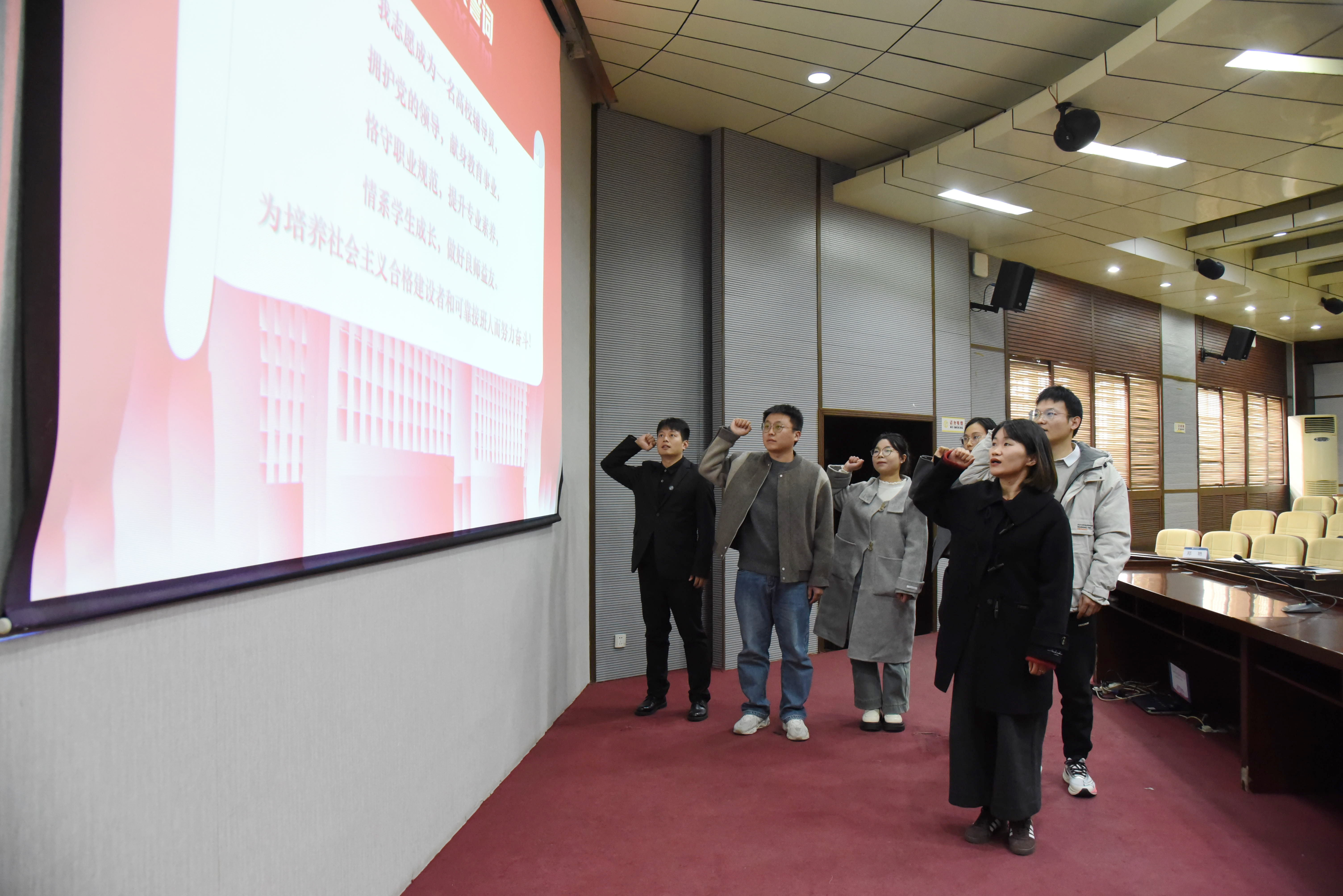 在生物与环境工程学院团委书记晁天彩的带领下,2024年新入职辅导员上台宣誓,表达将恪守职业规范,提升专业素养,情系学生成长,做好良师益友,为培养德智体美劳全面发展的社会主义建设者和接班人而努力奋斗!