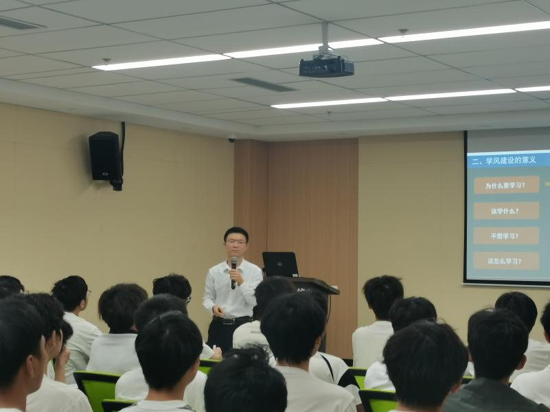 苏洁红从学校获得“全国大学生自强之星”的沈李祥同学事迹引入,以“加强班级建设,营造良好学风”为主题,从学风建设的内涵、意义以及如何加强学风建设三个方面入手,针对班级班委和学生如何共同努力营造良好学风提出指导意见。最后,通过问答、宣誓、签名等方式,引导学生端正学习态度,激发学生学习内驱力。