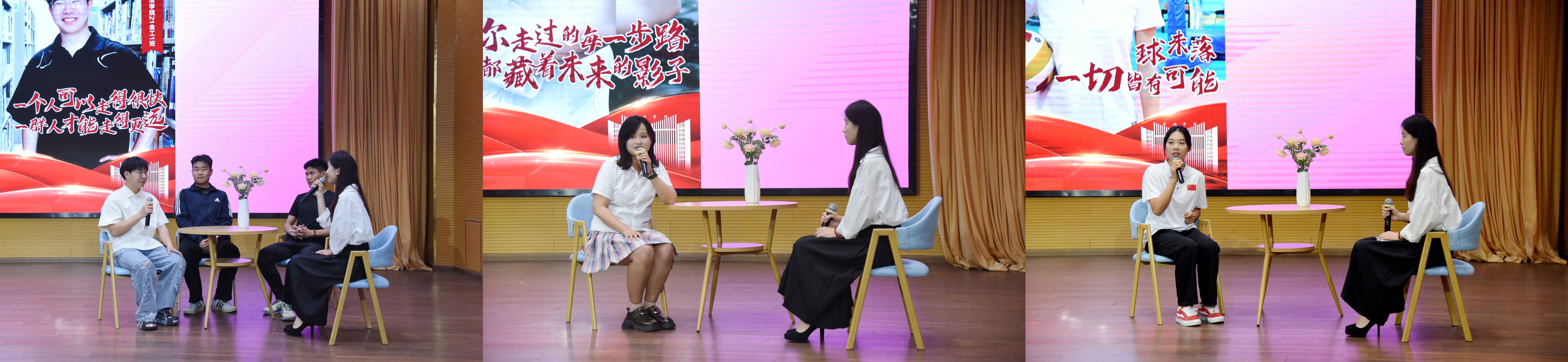 报告过程中,分别对6位优秀学子进行了现场访谈,并设计了互动交流环节,现场掌声连绵起伏、经久不息,气氛热烈活跃。