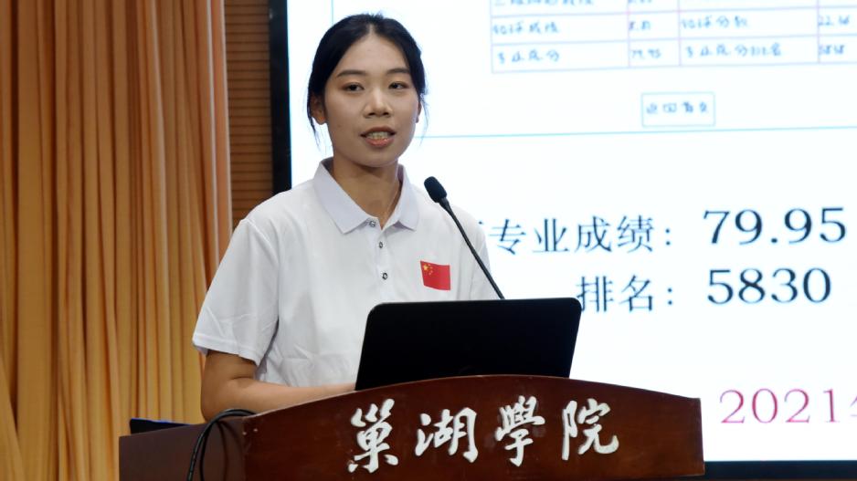 文传学院2021级网媒1班王雅琴同学以“你走过的每一步路都藏着未来的影子”为主题分享了她从巢院到中科大的成长密钥,勉励学弟学妹们“成长路上一切皆有可能”,要趁青春正好,不惧挑战,勇敢追梦!