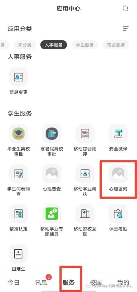 1.线上预约:在“今日校园—服务—学生服务—心理咨询”模块进行预约(推荐);